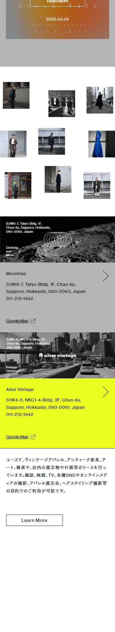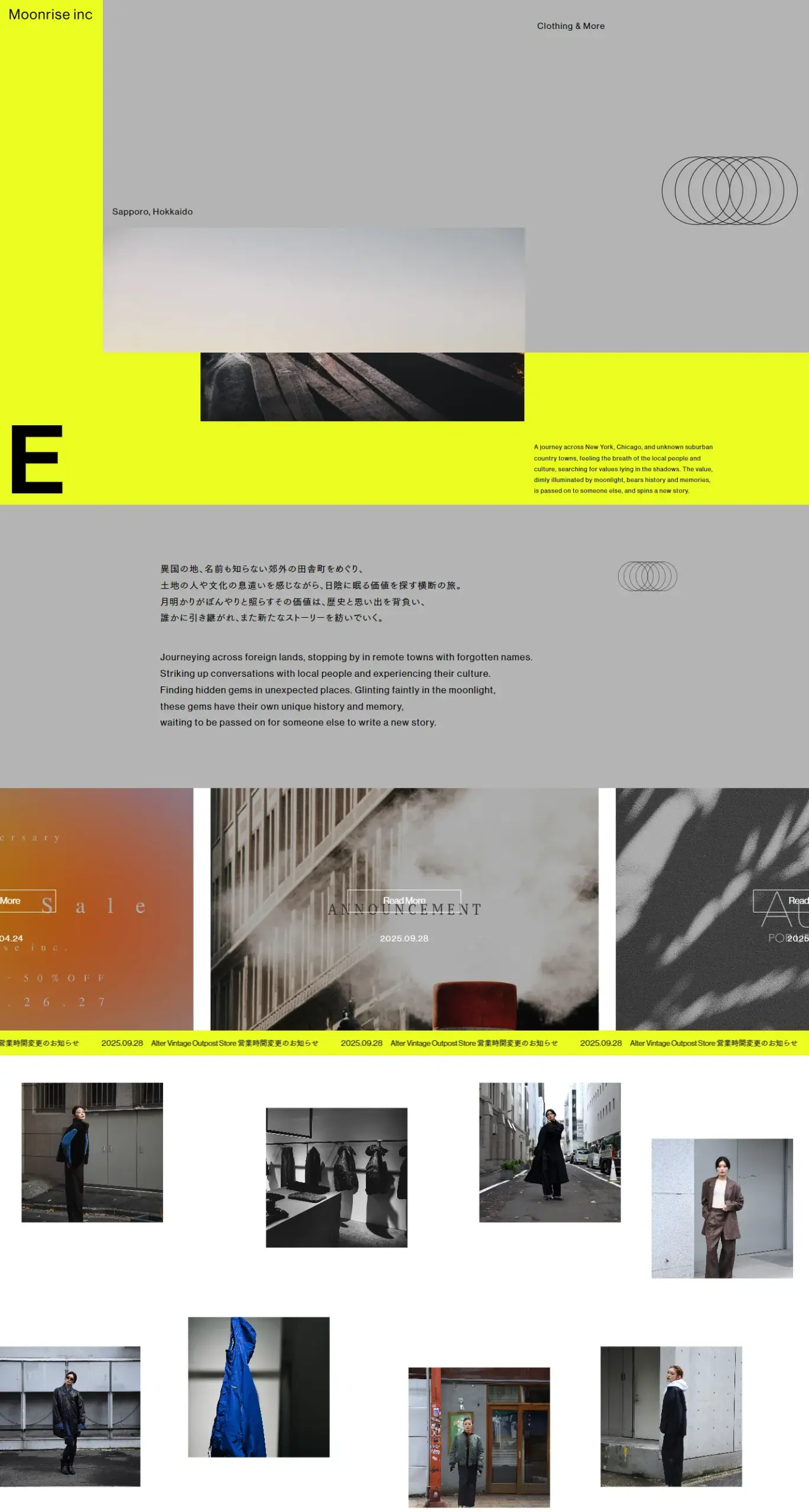 北海道札幌市に拠点を置き、メンズ、レディース、アンティークファニチャーなどを扱うセレクトショップとヴィンテージクロージングストアを展開している株式会社ムーンライズのホームページです。