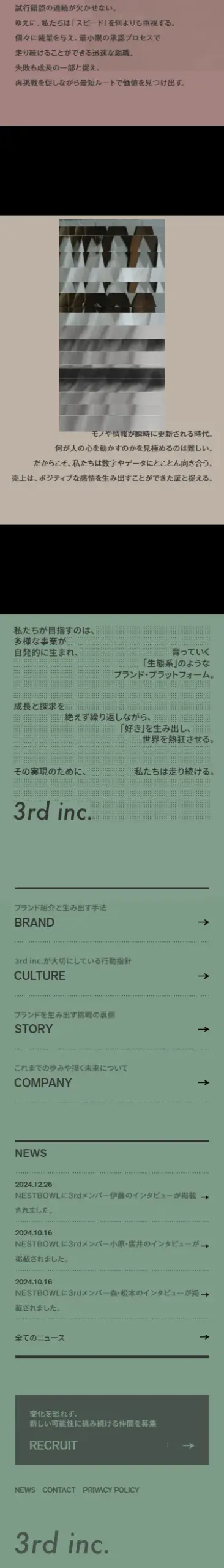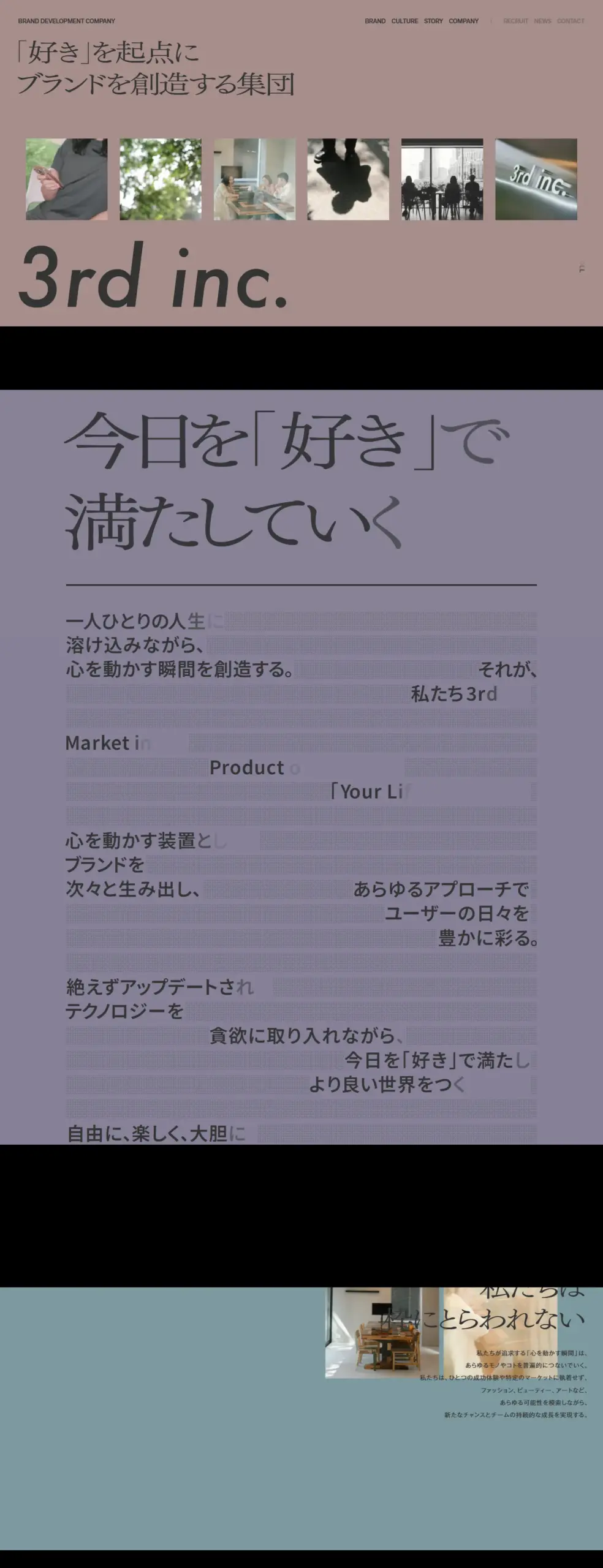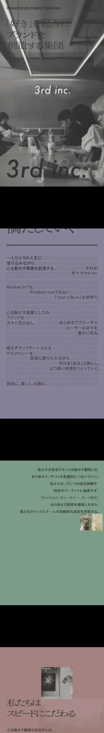 3rd inc.(3rd株式会社)は「好き」を起点にブランドを創造する集団です。私たちが目指すのは、多様な事業が自発的に生まれ、育っていく「生態系」のようなブランド・プラットフォームです。