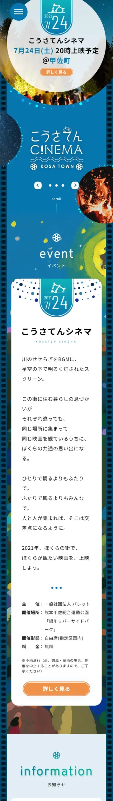 こうさてんCINEMA | 熊本県甲佐町にて野外映画イベント「こうさてんCINEMA」開演!夜空のもとでご家族やご友人、大切な人と一緒に楽しいひとときを。