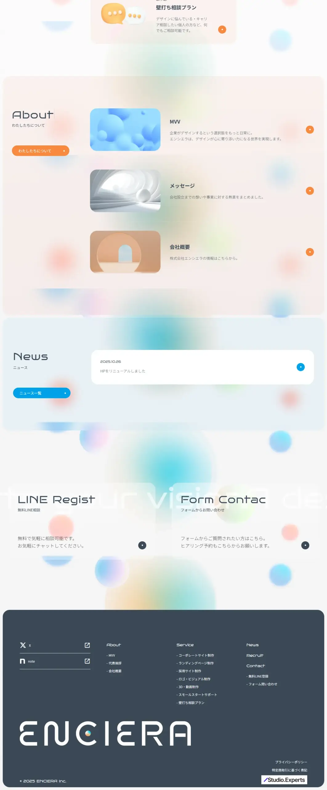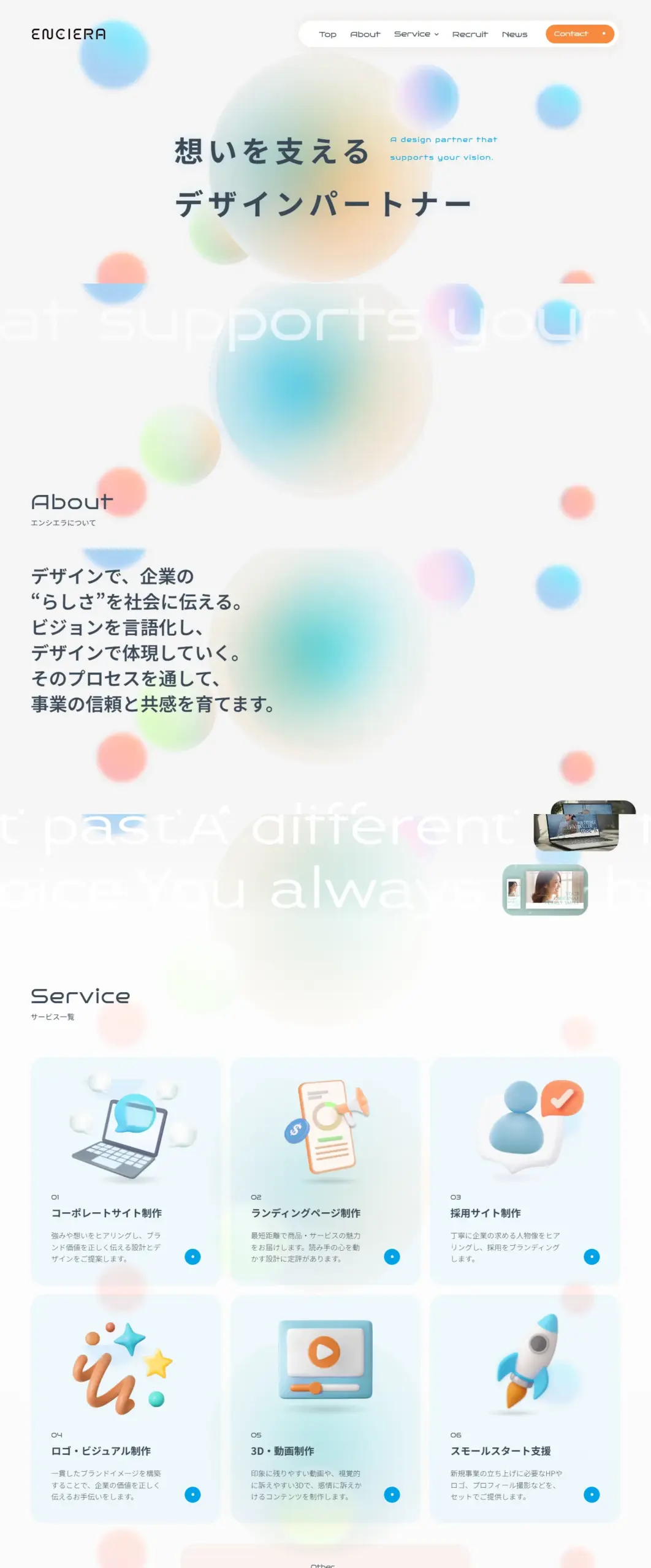 株式会社エンシエラは、企業や個人の“想い”をデザインで可視化するWeb制作会社です。コーポレートサイト・LP・採用サイトなど、STUDIOを中心に心を動かすブランディングを提案します。