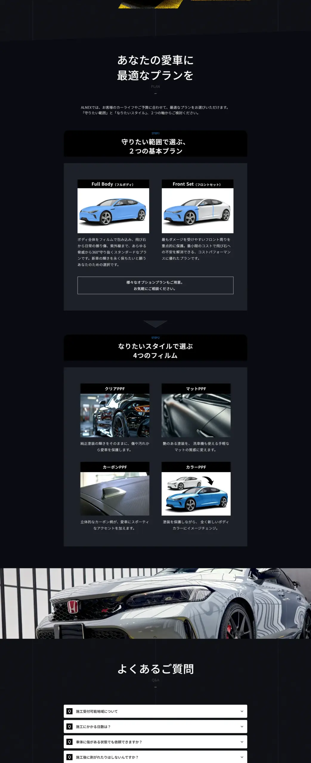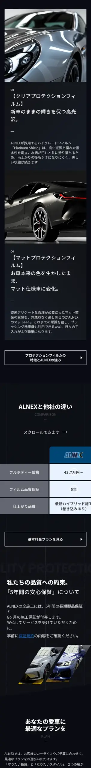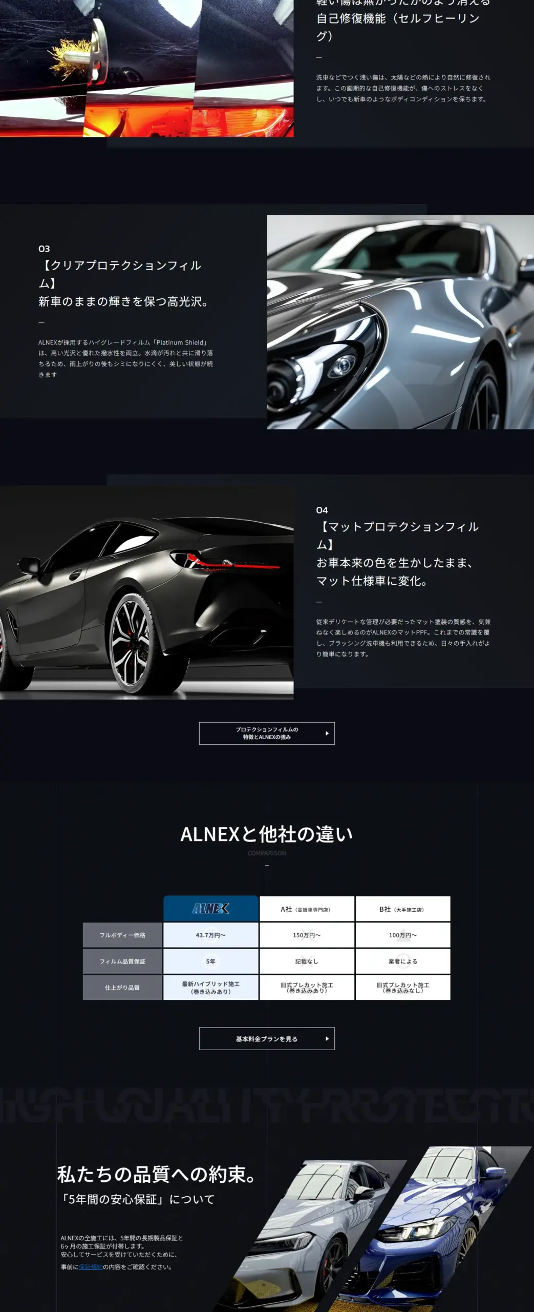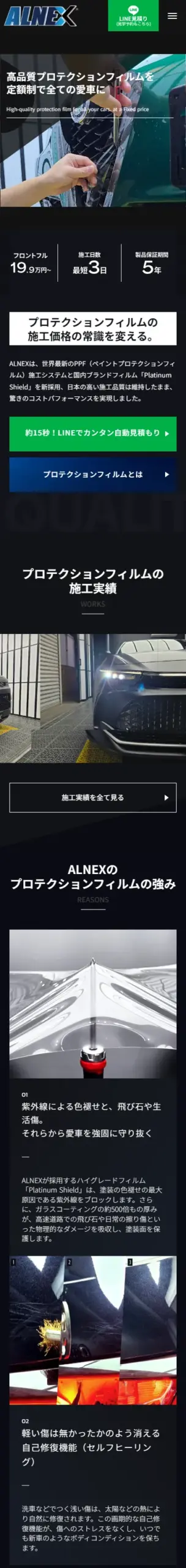 ALNEXのプロテクションフィルムは、最新技術と高品質フィルムで塗装を守る。低価格×高品質×5年保証で新車の輝きを永遠に。