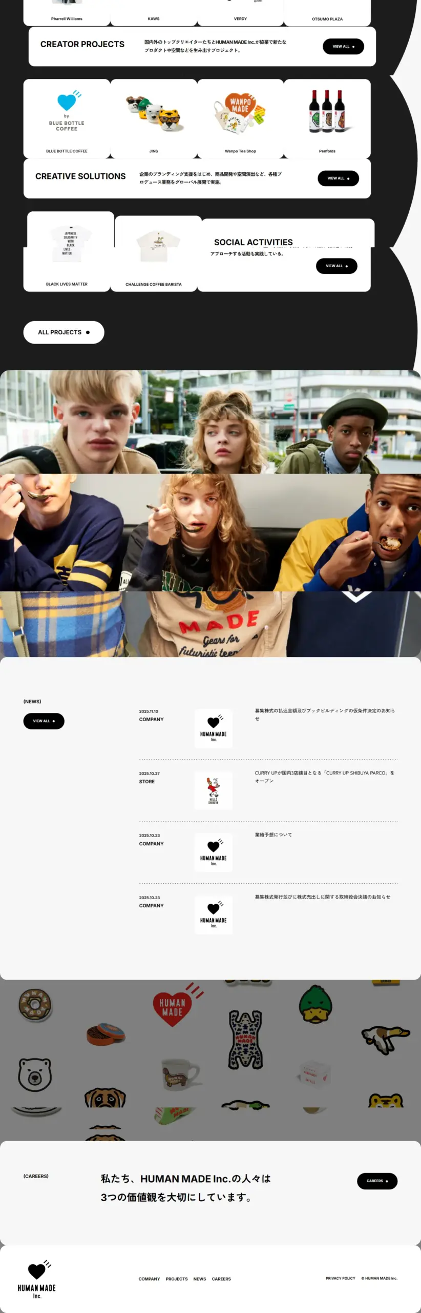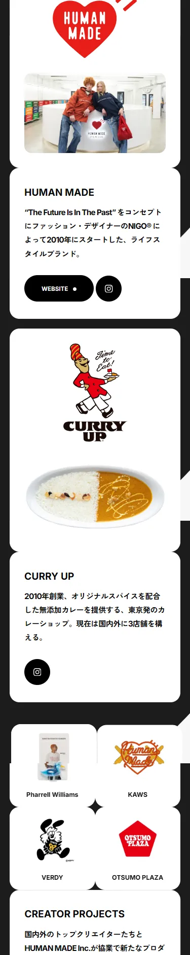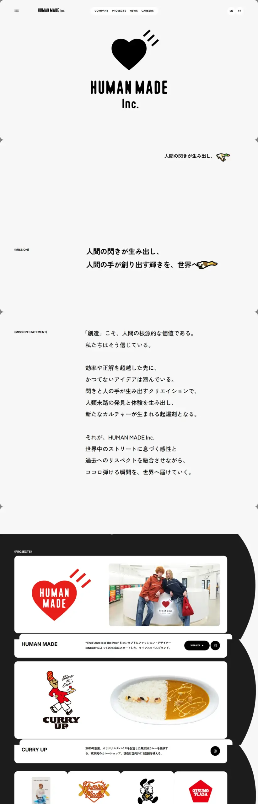 HUMAN MADEやCURRY UPを運営するHUMAN MADE株式会社のコーポレートサイトです。各種プロジェクトや最新情報、会社情報などをご覧いただけます。