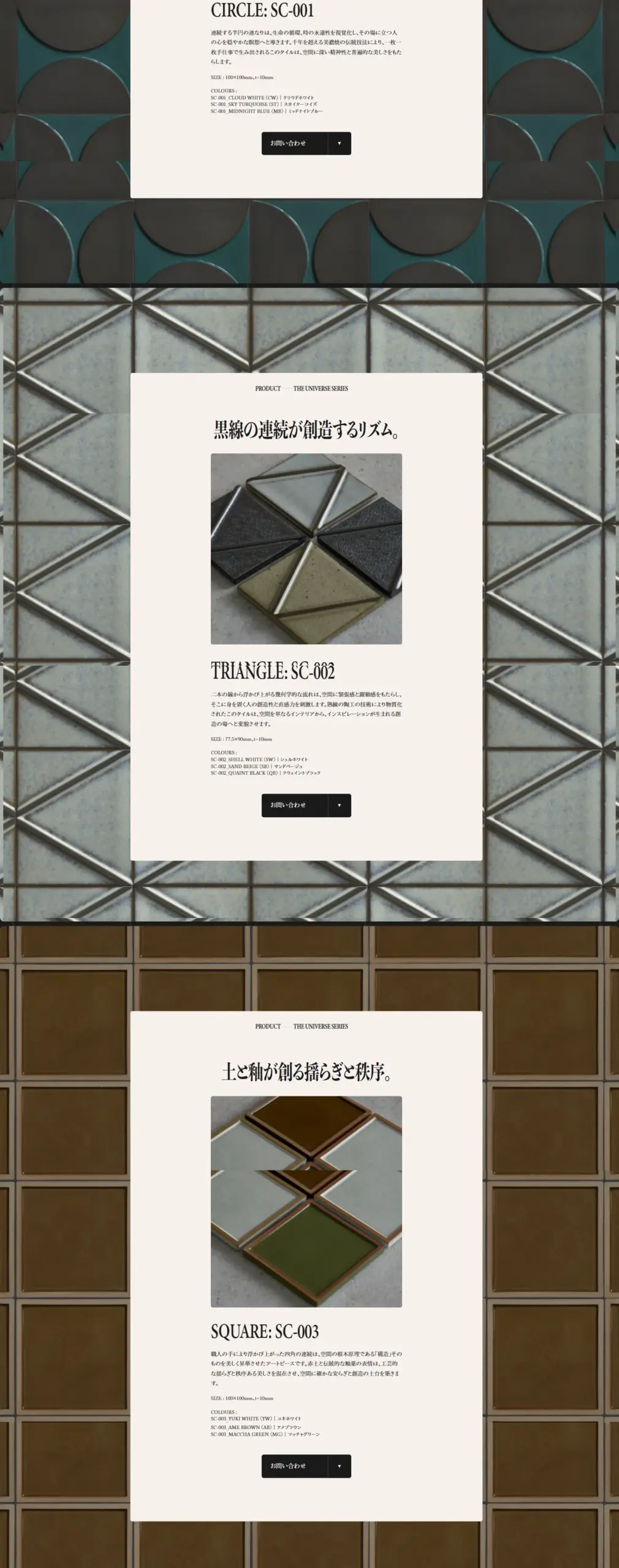 SCは、聖和セラミックスが「本気のタイル」を追求する工芸タイルブランドです。