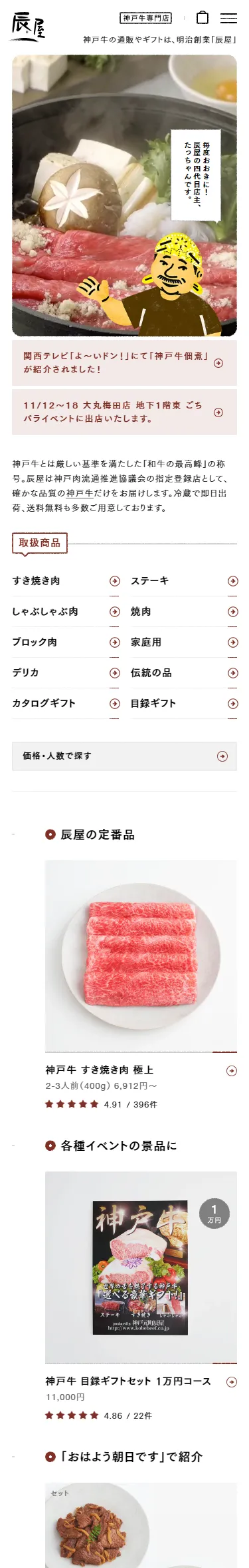神戸牛 通販|神戸元町辰屋|牛肉 / 和牛 / ギフト