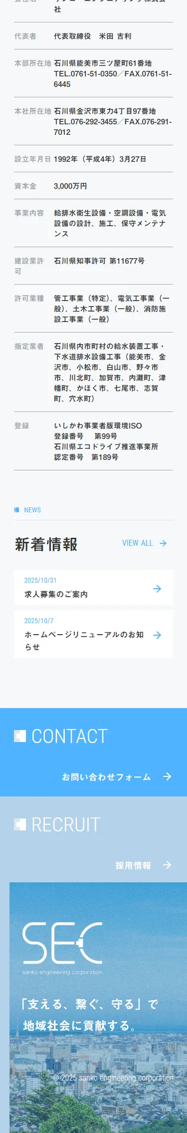 サンコーエンジニアリング株式会社 | 石川の給排水・空調・電気設備工事・保守