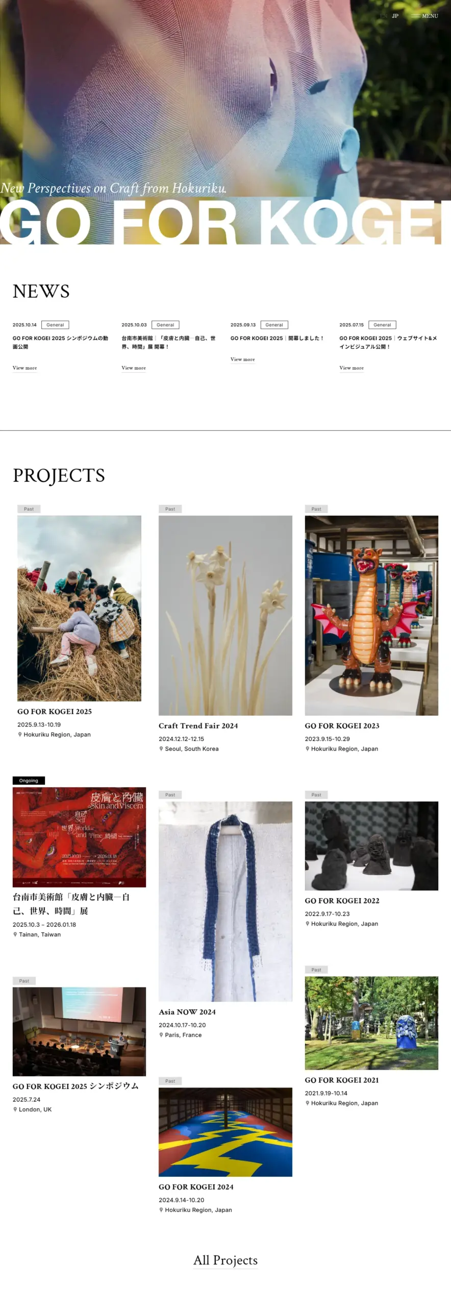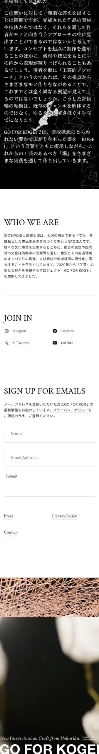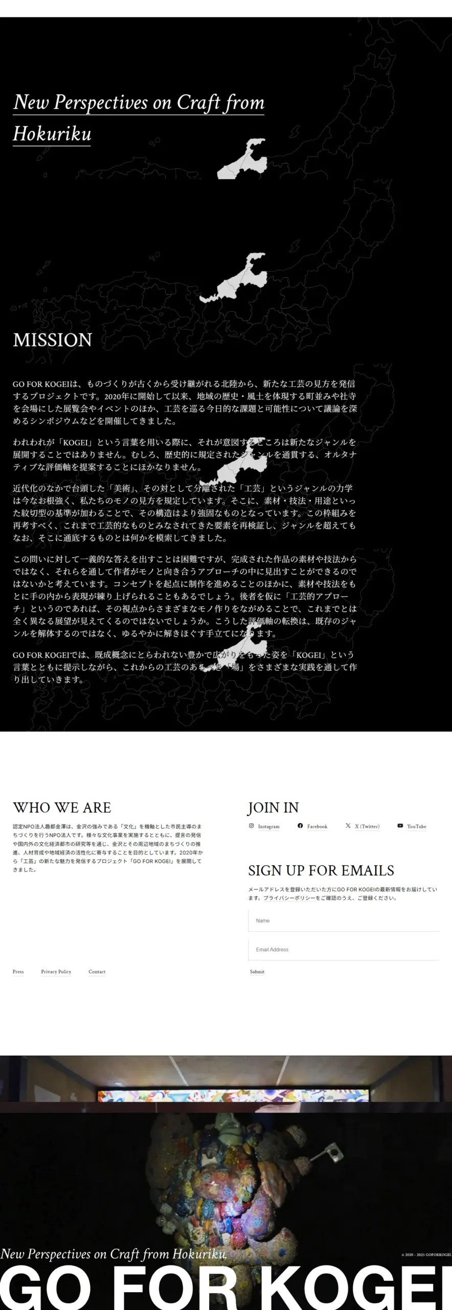 GO FOR KOGEIは、日本の北陸から世界に向けて、ジャンルにとらわれない新たな工芸の見方を発信するプロジェクトです。