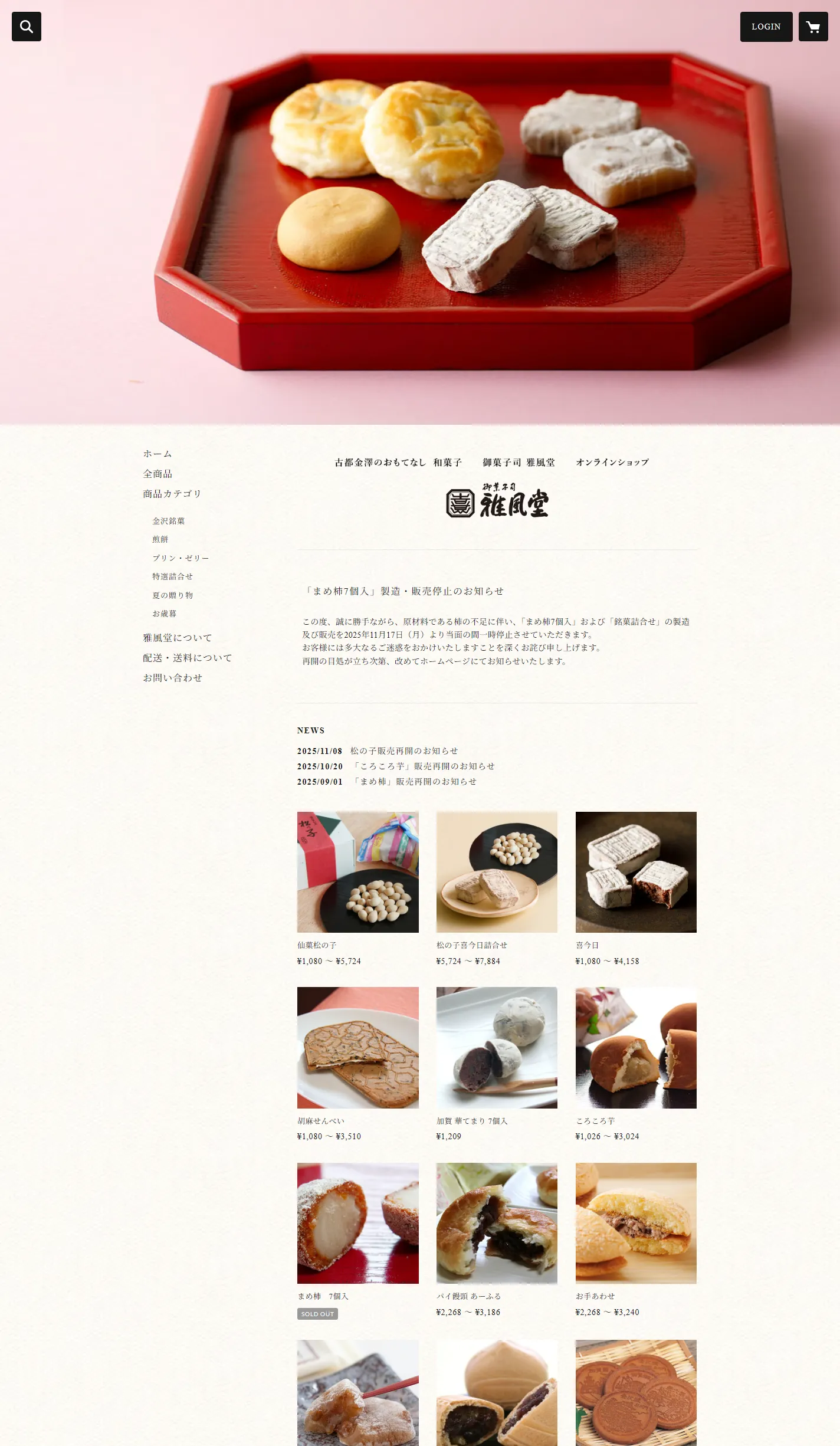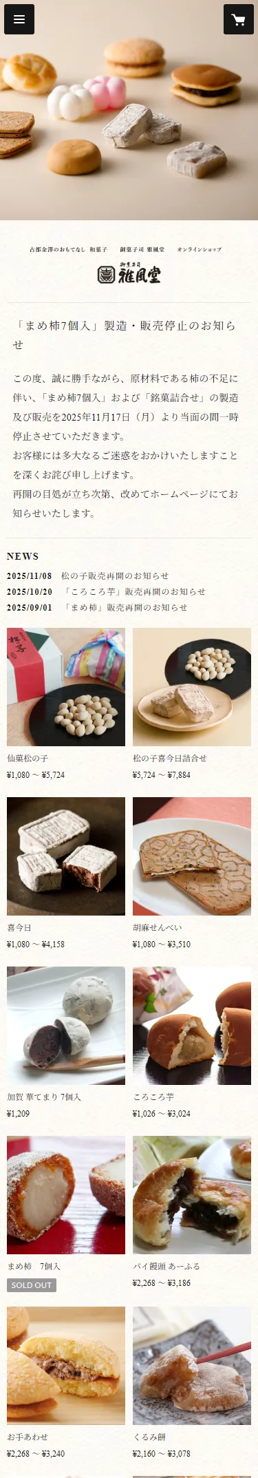 御菓子司 雅風堂 オンラインショップ