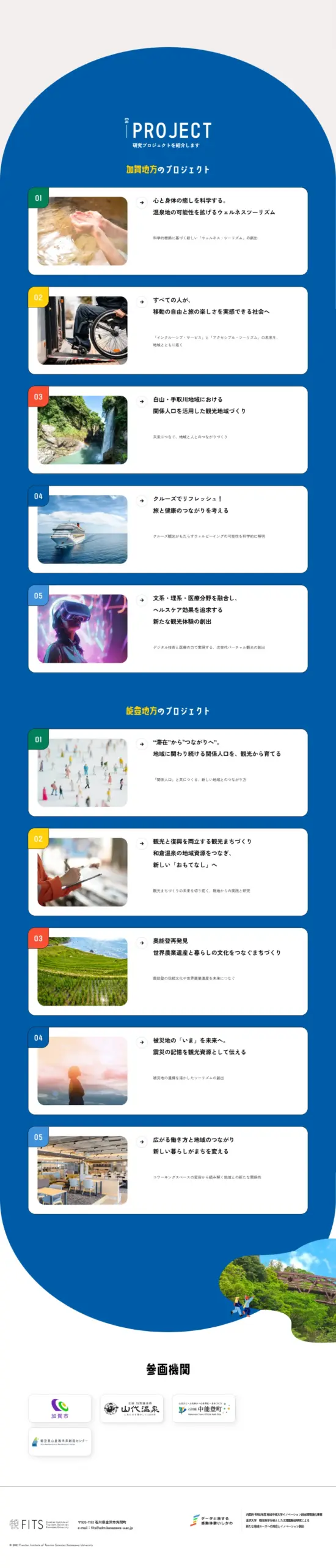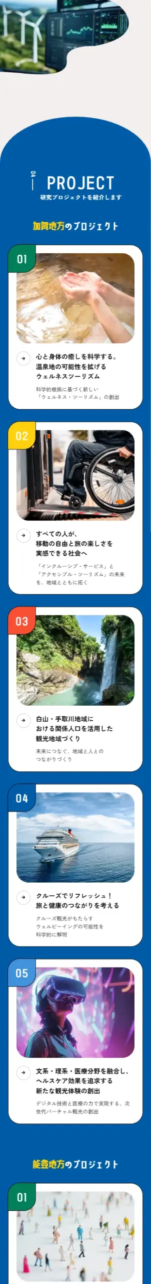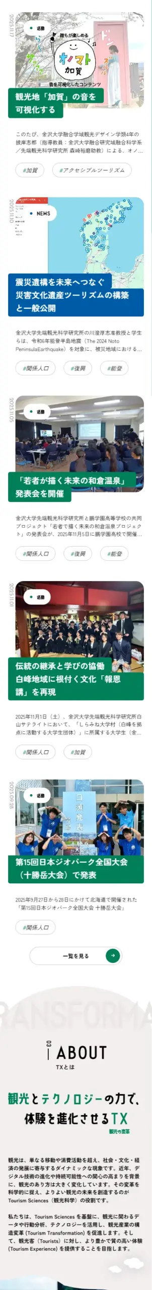 本サイトは、地域中核大学イノベーション創出環境強化事業の一環として、加賀・能登をフィールドに、地域社会と連携しながら、多種多様な地域課題の解決への挑戦を通じ、新たな価値の創造を目指すプロジェクトに係る情報を発信します。