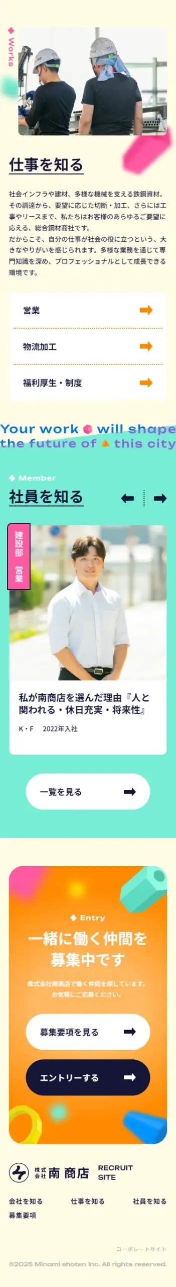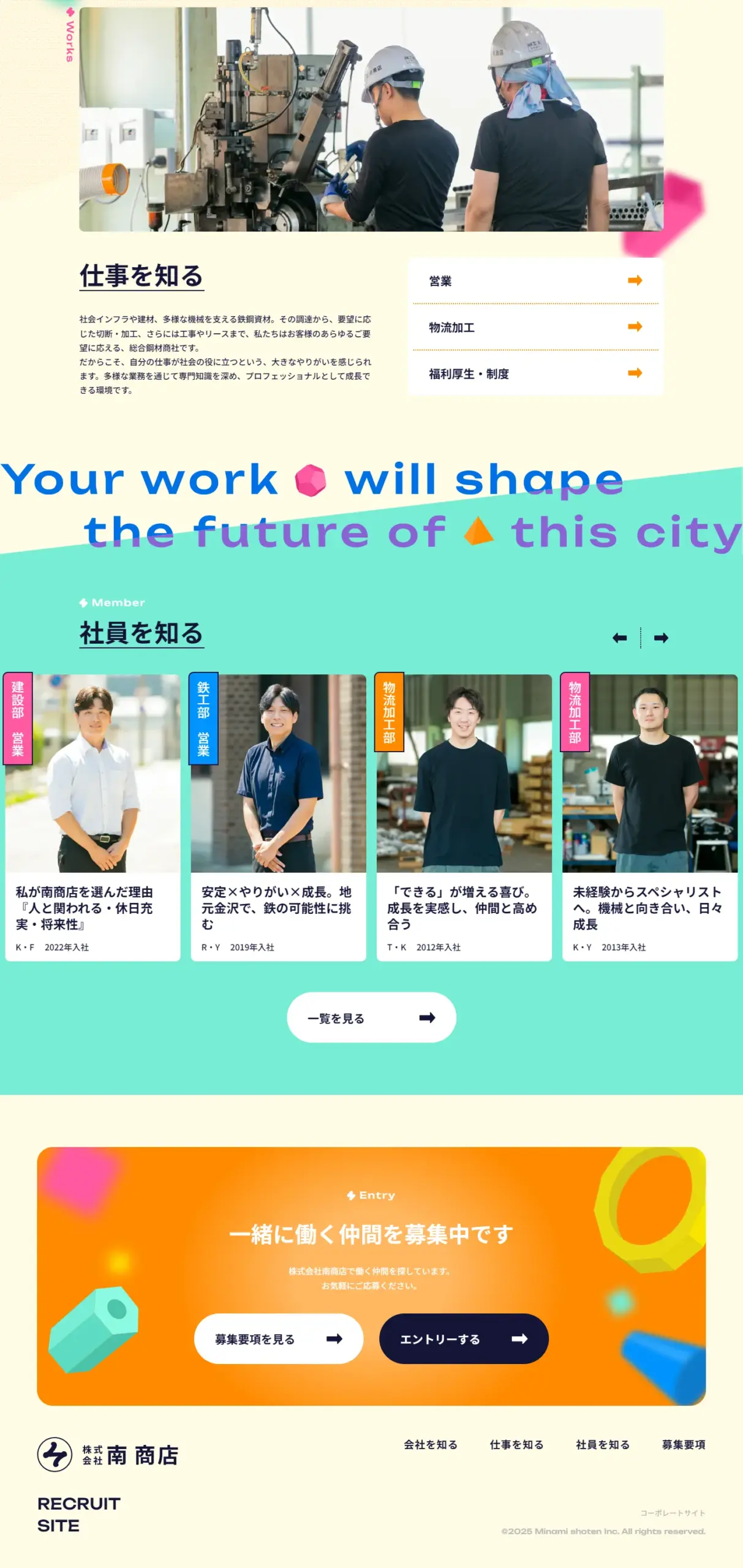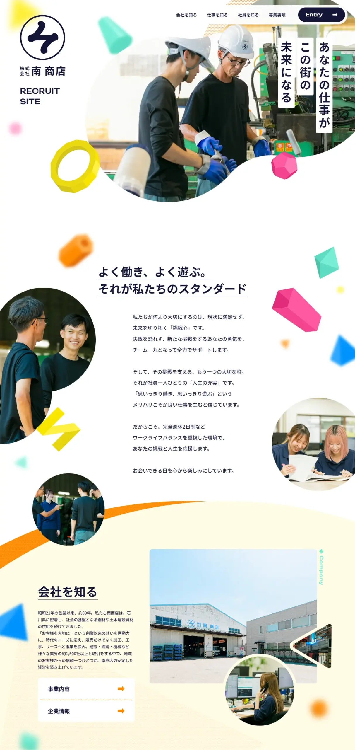 南商店の採用サイトです。事業紹介や職種紹介、社員インタビューなど様々な情報を掲載しています。