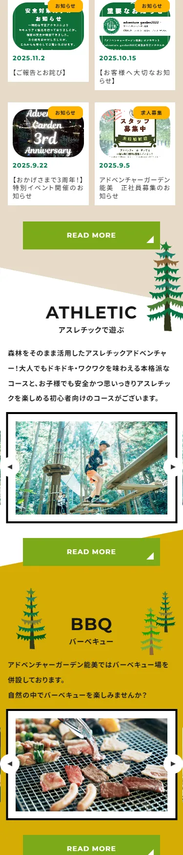 石川県能美市のレジャースポット「アドベンチャーガーデン能美」!森林の地形や樹木を自然のまま活用し、大自然のなかでフィールドアスレチックやジップラインが楽しめます。