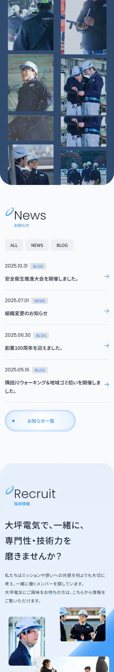 大坪電気のコーポレートサイトです。大坪電気は建物に必要な電気・通信設備・空調・給排水・内装工事などの工事をワンストップでトータル施工・管理できるサブコントラクターです。