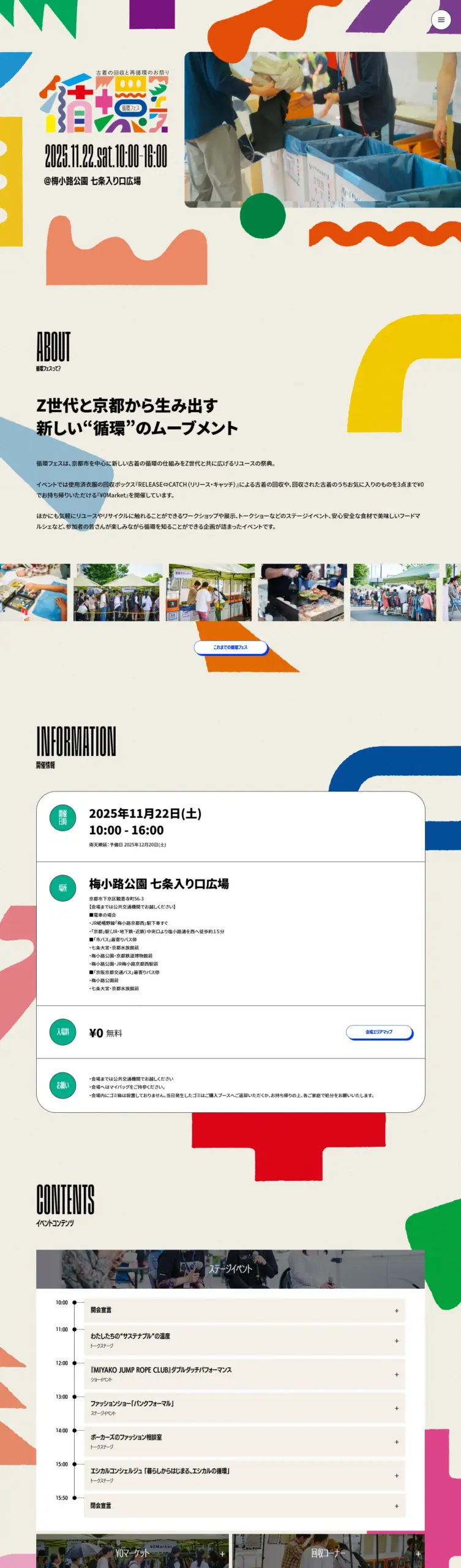 循環フェスは、京都市を中心に新しい古着の循環の仕組みを若者と共に広げるリユースの祭典です。