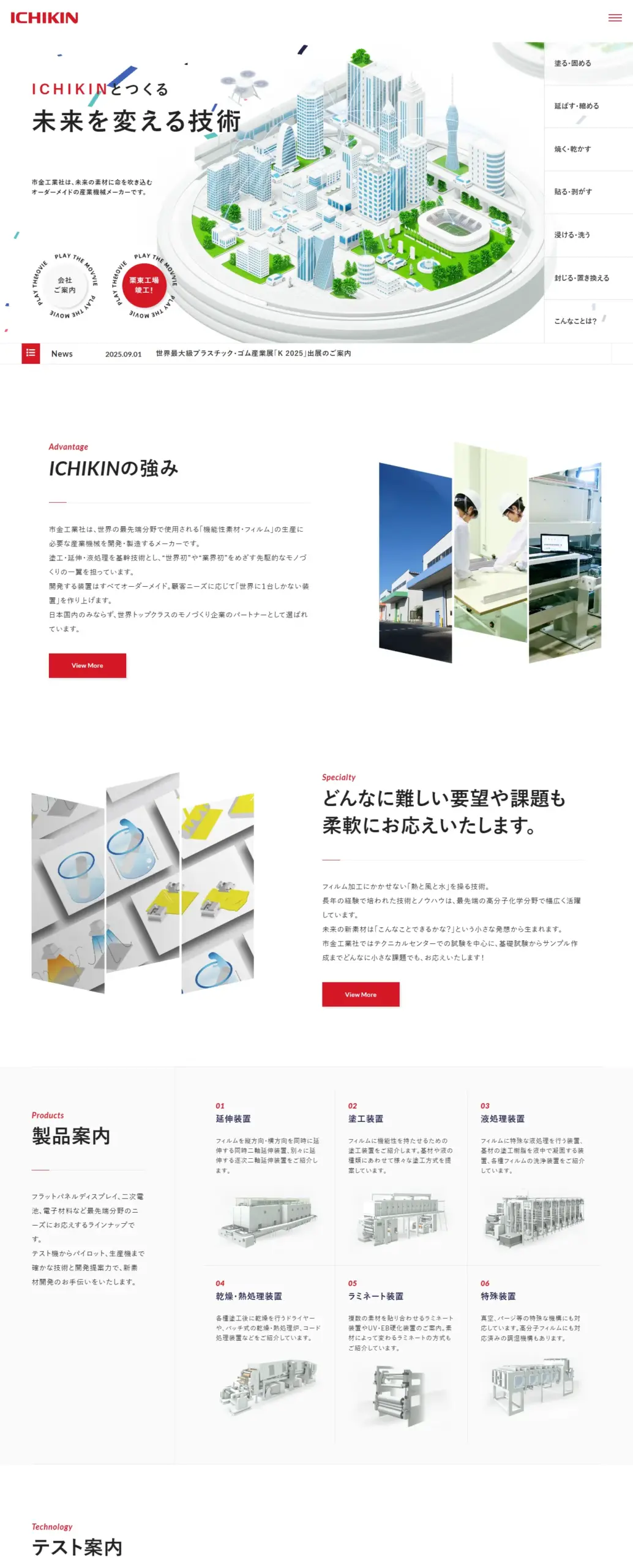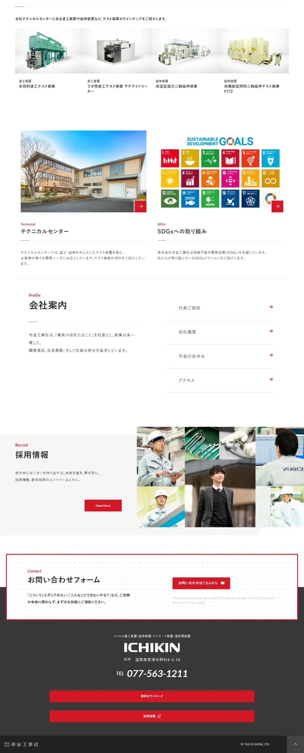 株式会社市金工業社は、滋賀県草津市にありますオーダーメイドの産業機械メーカーです。長年の経験で培われた技術とノウハウで、フィルム塗工装置・延伸装置・ラミネート装置・液処理装置等、最先端の高分子化学分野の装置をご提案しています。