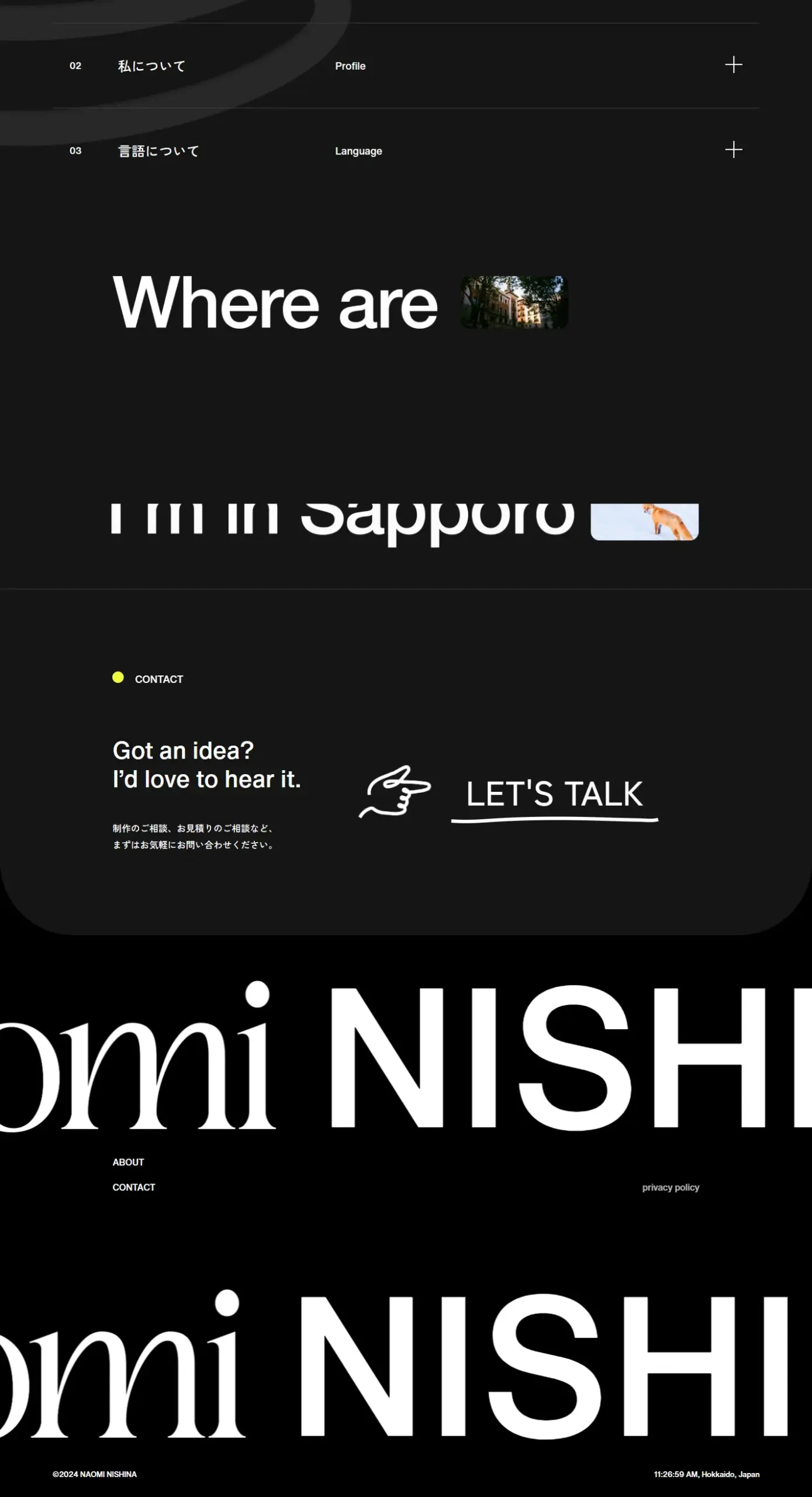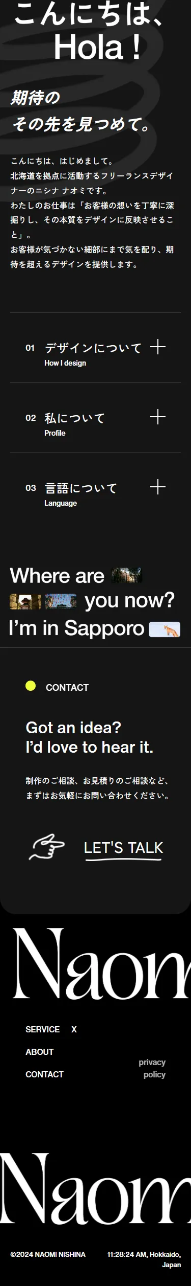 ニシナナオミのポートフォリオ。北海道を拠点に活動するフリーランスデザイナー。WEB制作を中心に幅広く対応しています。