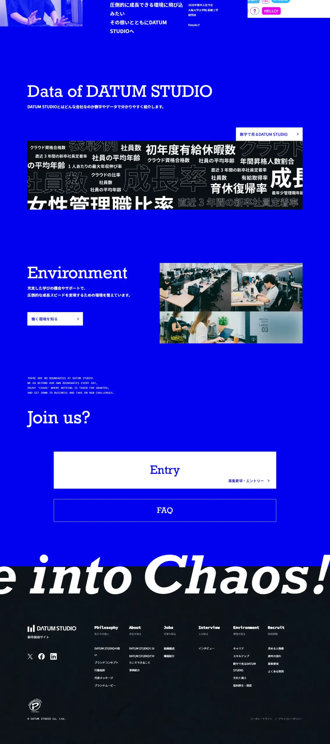 DATUM STUDIO株式会社の新卒採用サイトです。DATUM STUDIOの事業やプロジェクト事例、社員インタビューや募集要項、よくある質問など、新卒採用に関する情報を紹介します。