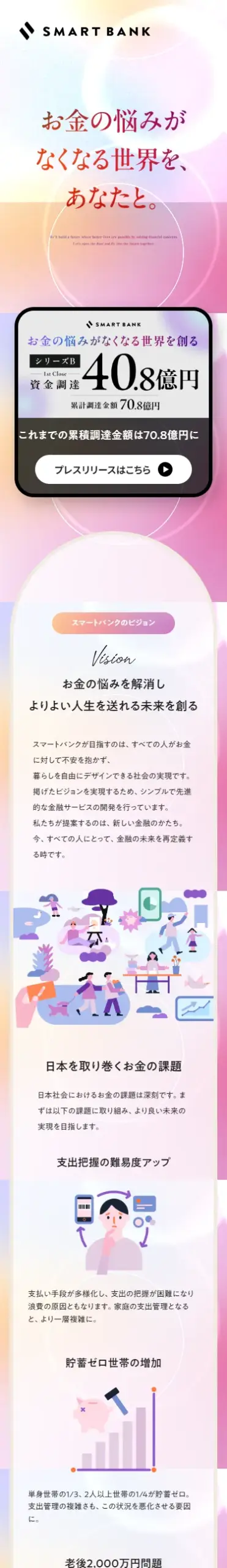 お金の悩みがなくなる世界をあなたと。累計70億円超の資金調達を実施したスマートバンクの採用情報をご紹介しています。共にビジョンを実現する仲間を募集しています。