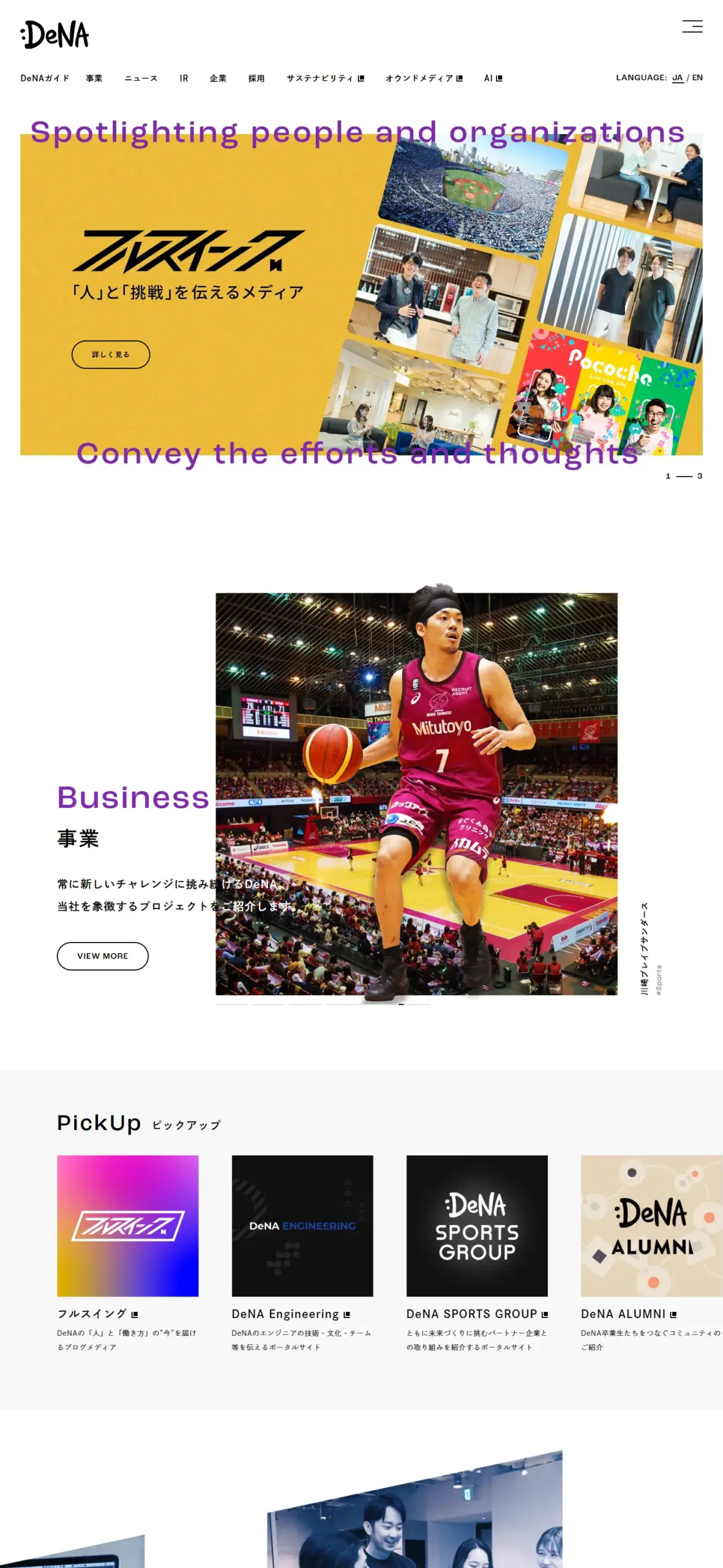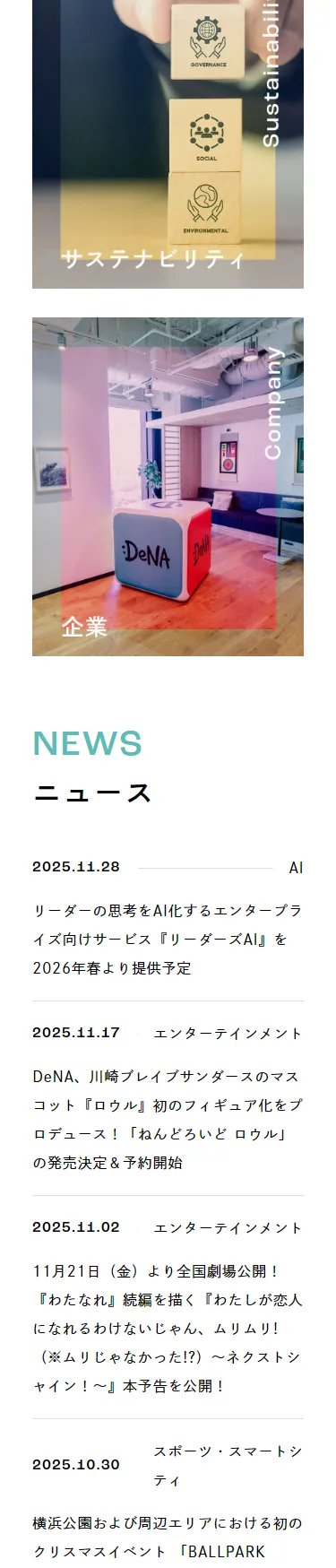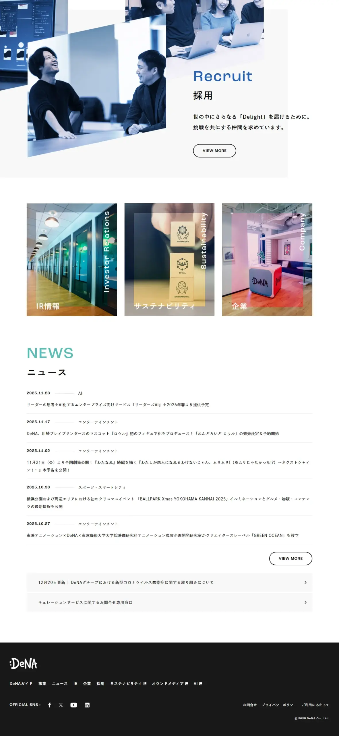 株式会社ディー・エヌ・エー【DeNA】の公式ホームページです。DeNAのサービス、企業情報などをご紹介しています。
