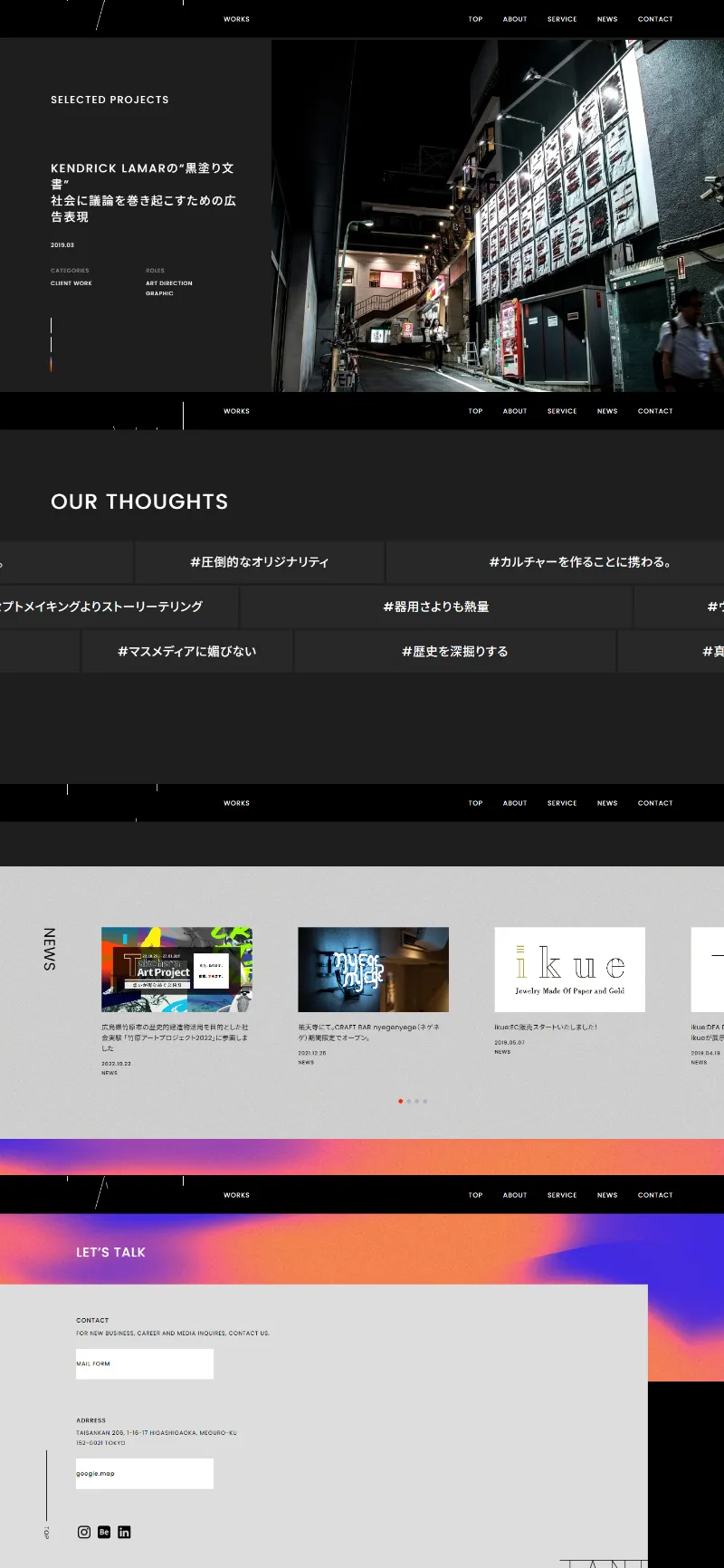 モノづくり、グラフィック、WEBデザインをはじめ、事業開発などスタートからゴールまでのクリエイティブを、強度の高いアウトプットで、持続性のある地熱を共に創り上げます。