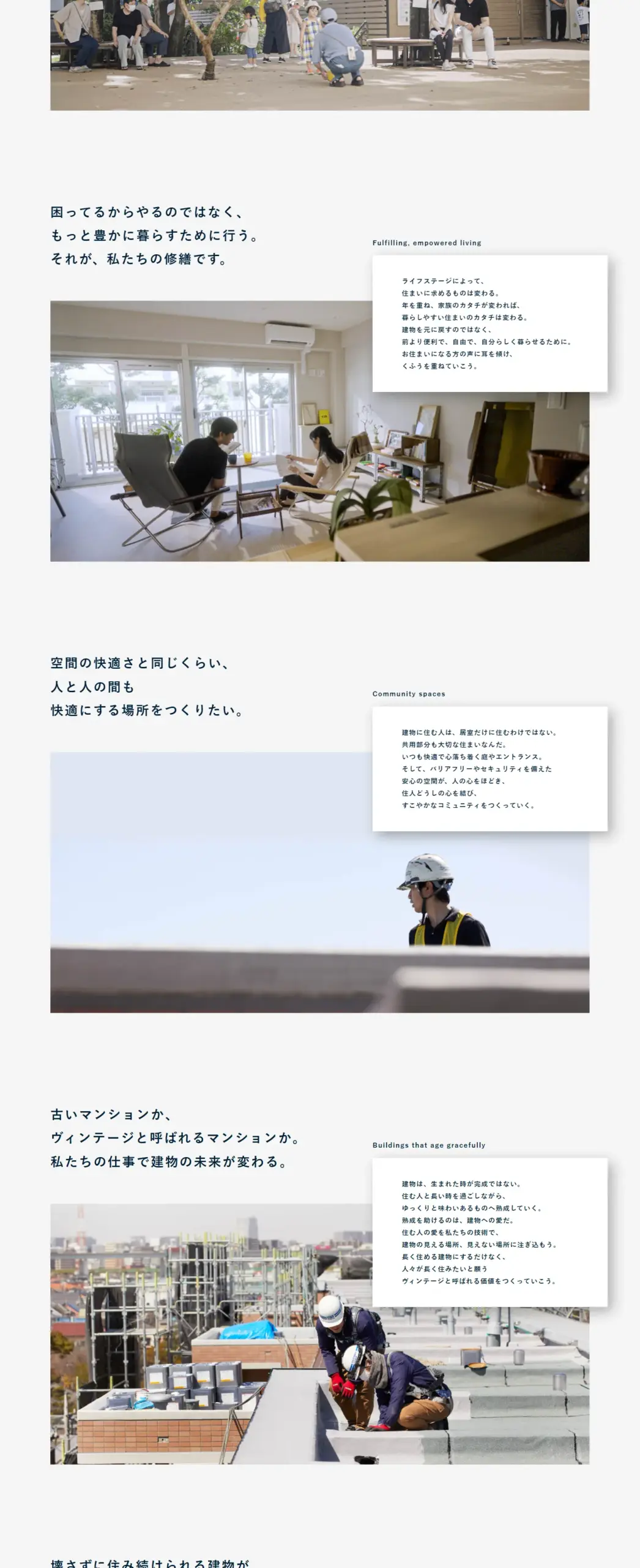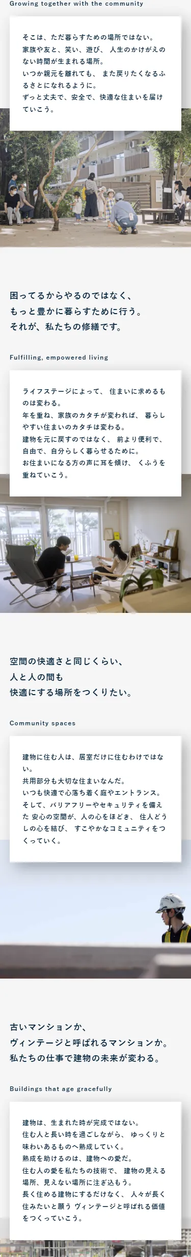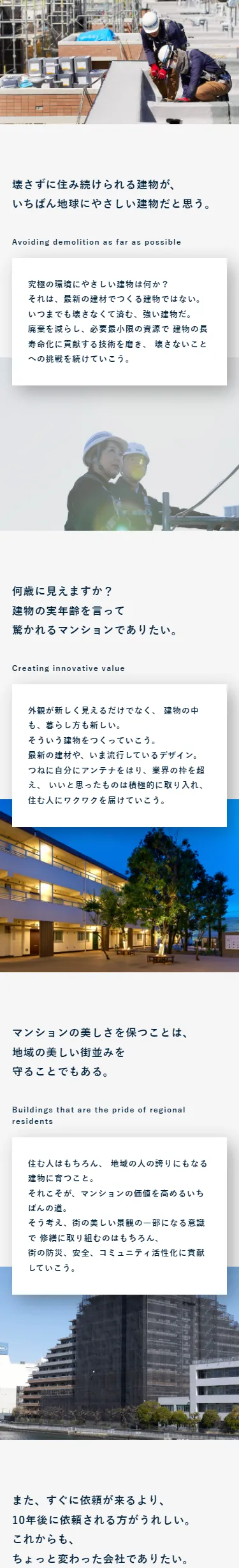5,000棟を超える実績。修繕工事・設備工事・リノベーションなど、建物のお困りごとを確かな技術で解決。「建物のかかりつけ医」としてみなさまに寄り添います。