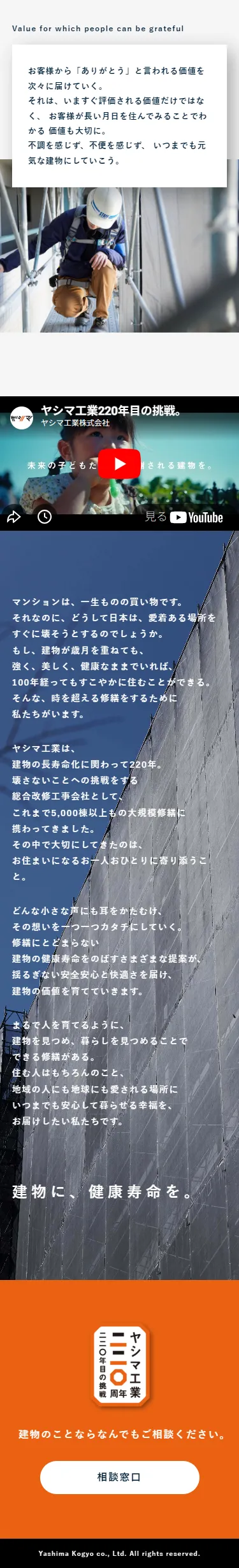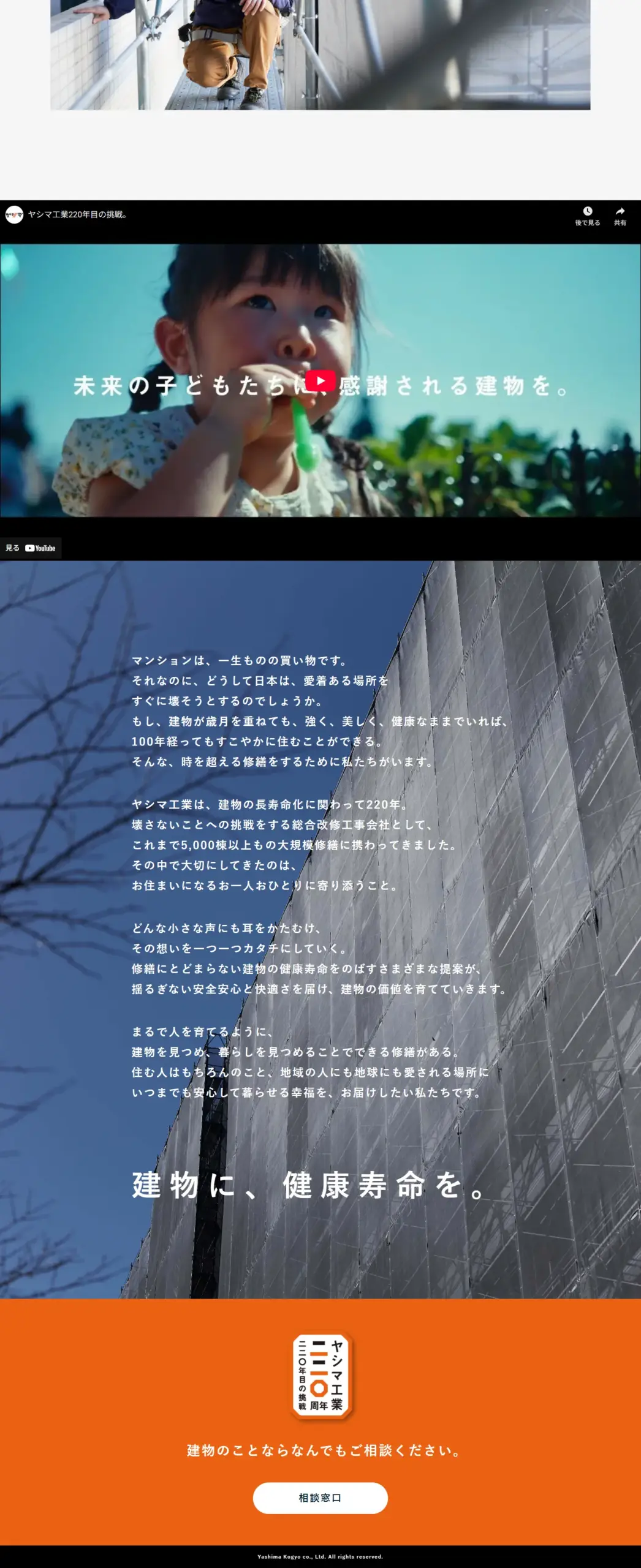 「建物に、健康寿命を。」マンション大規模修繕のヤシマ工業株式会社