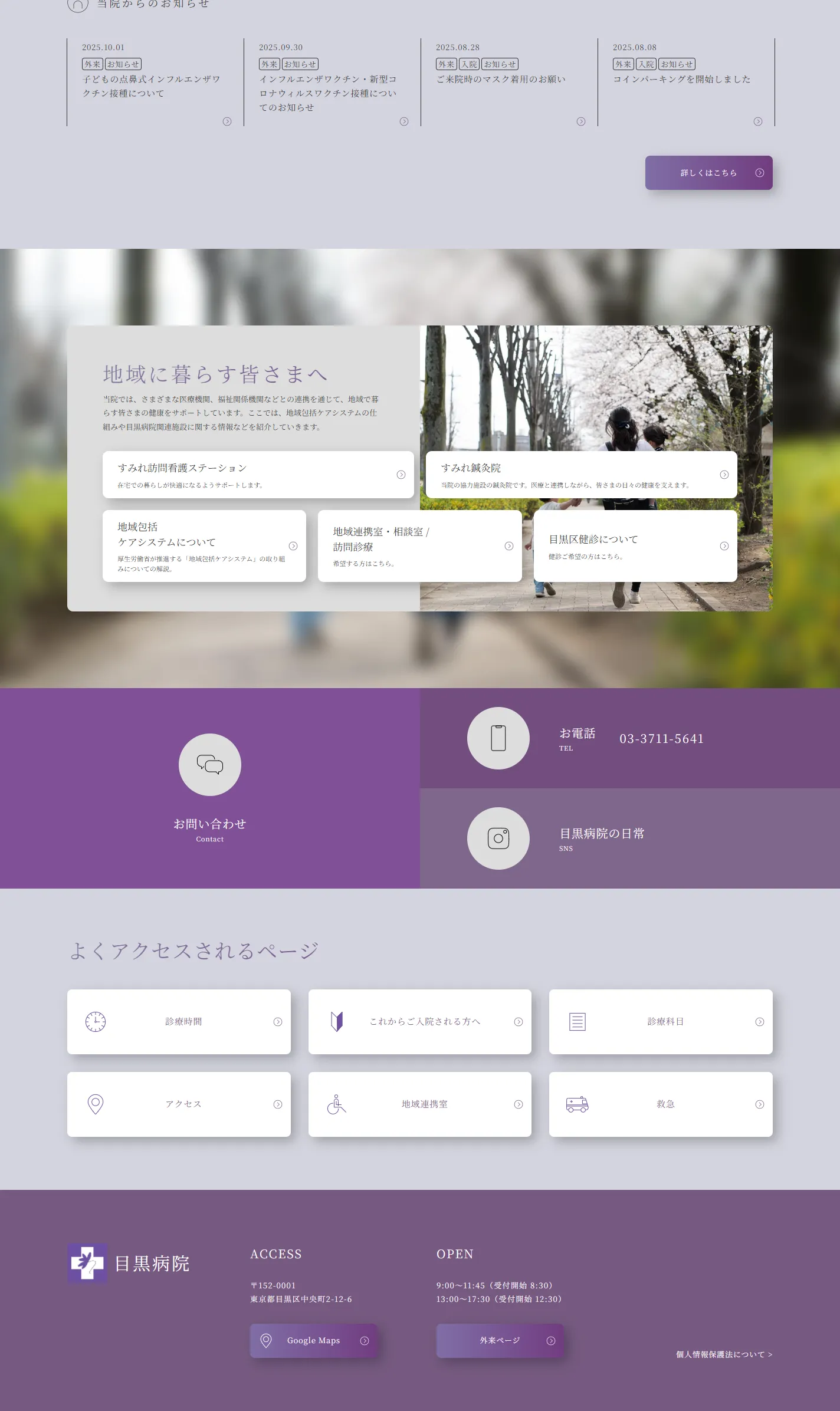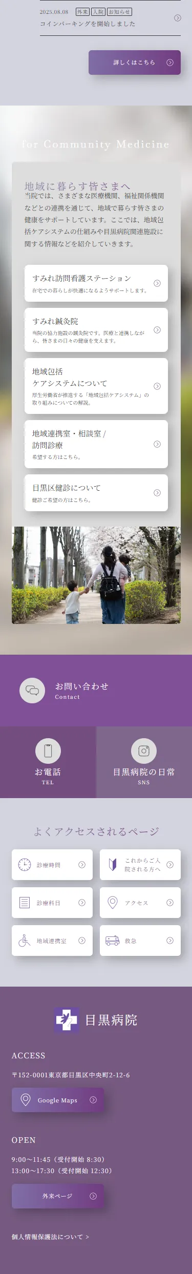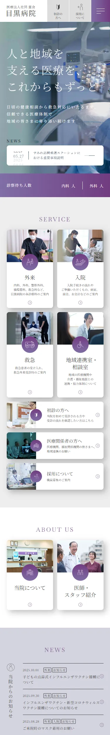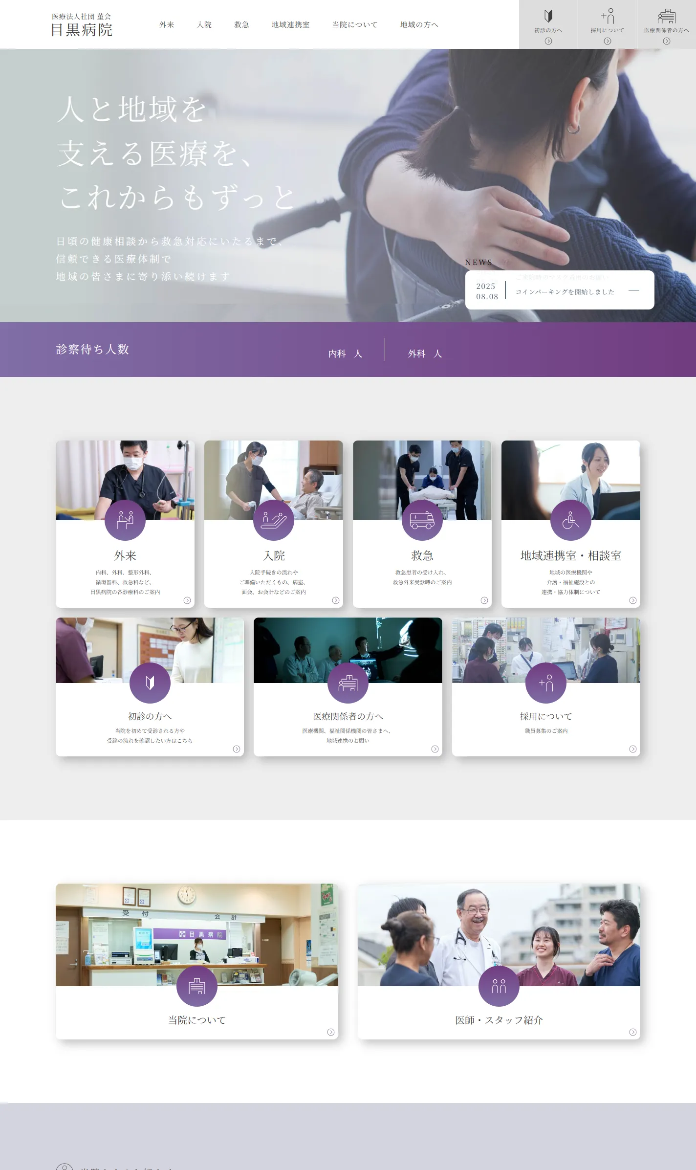 目黒病院は、地域医療を担う二次救急病院です。整形外科、循環器科、内科、外科、救急科などの診察・治療で、人と地域に寄り添う医療を展開しています。