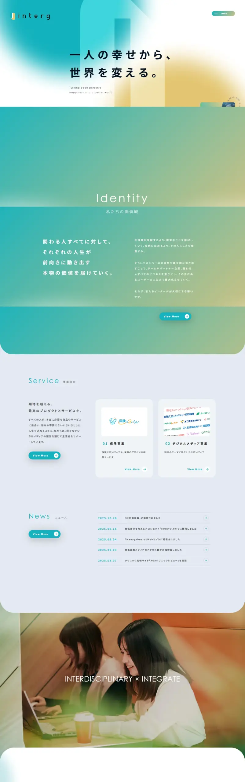 インターグ株式会社のコーポレートサイトです。インターグは、「一人の幸せから、世界を変える。」をミッションに、デジタルメディア事業や保険事業を展開しています。