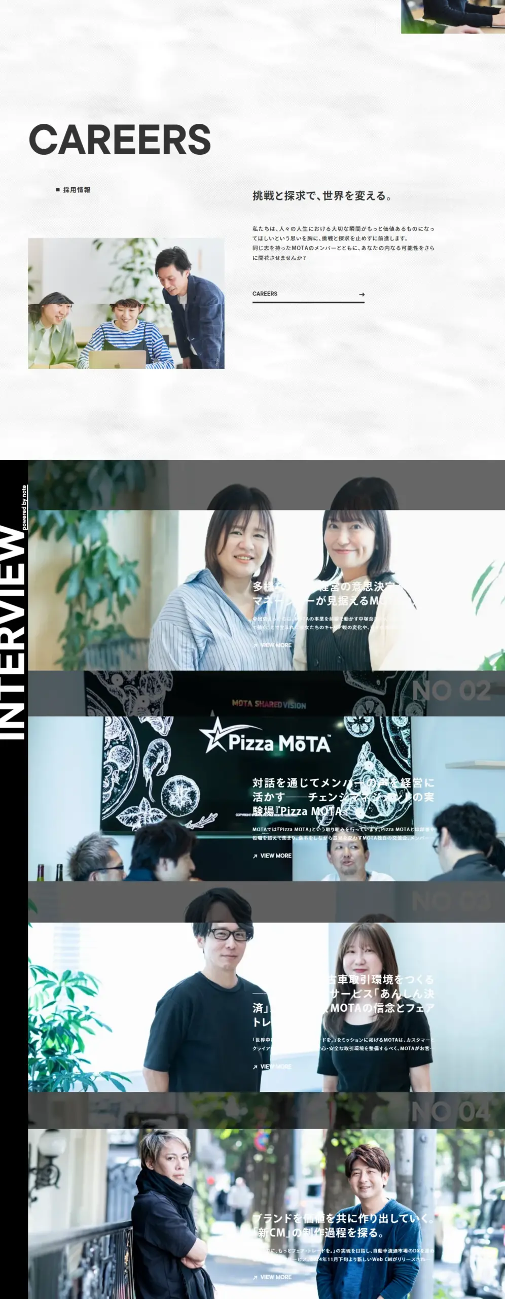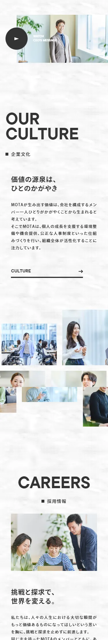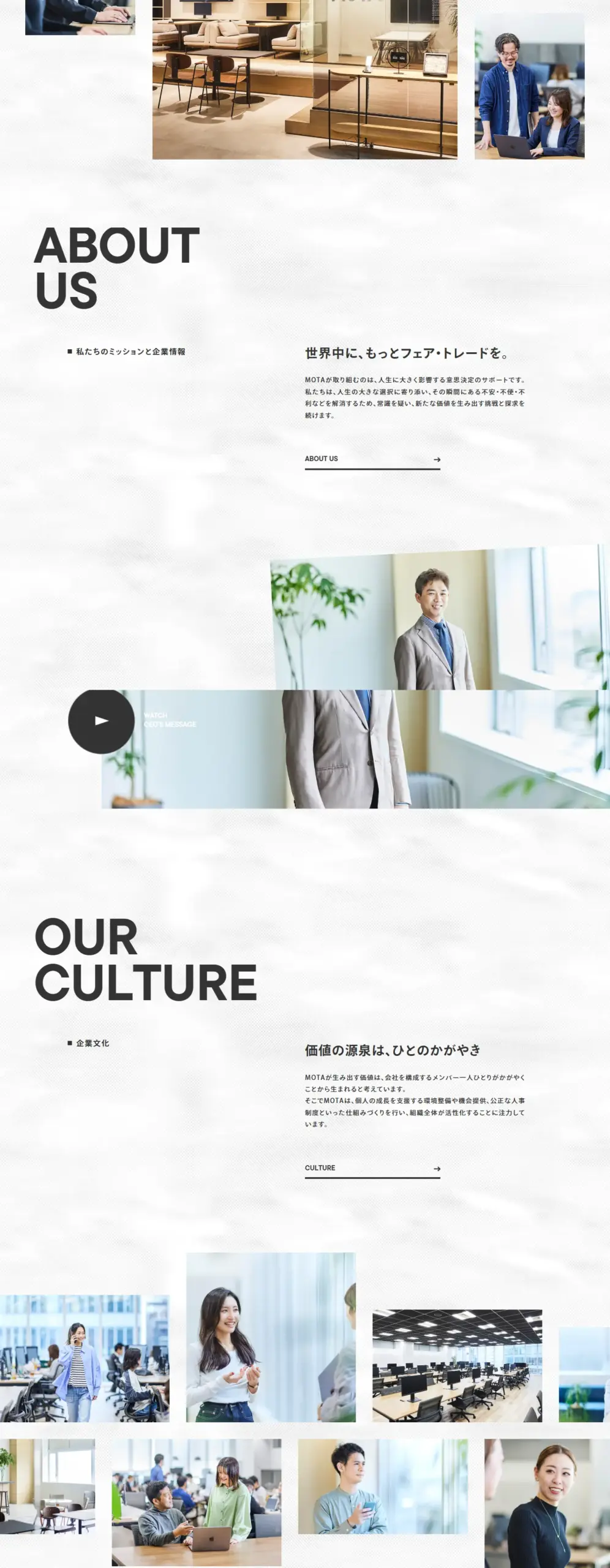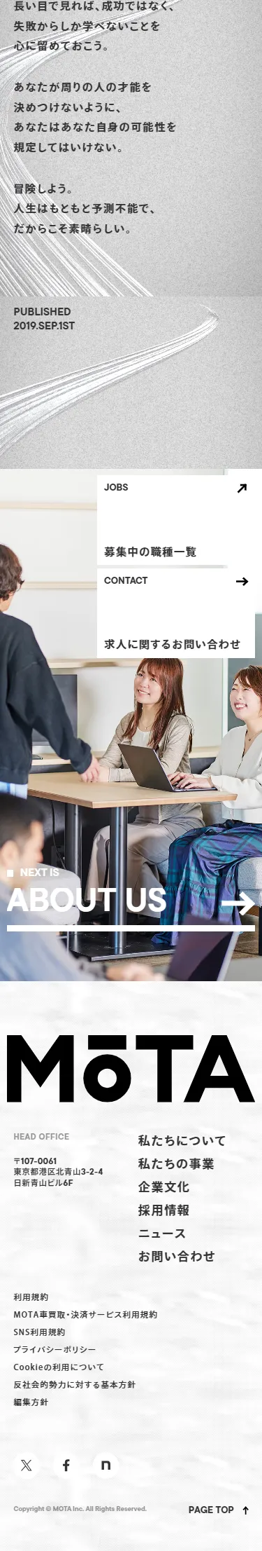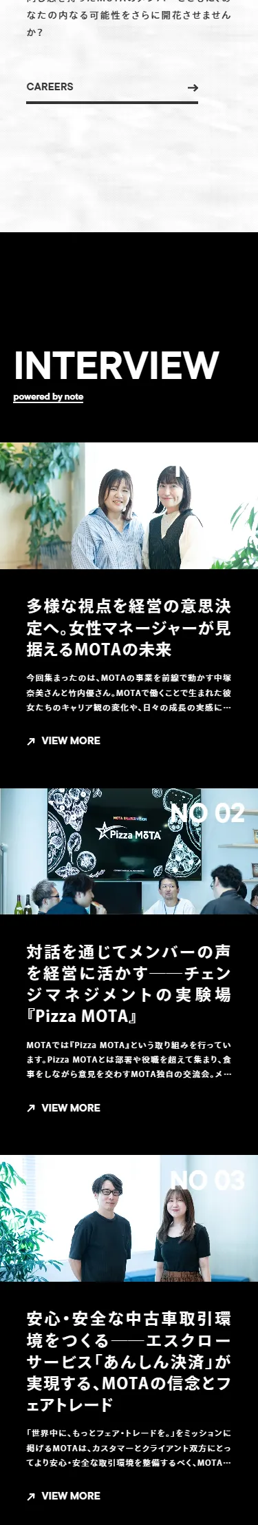 モビリティ事業を中心に、人生に大きく影響する意思決定をサポートし、ライフイベントの価値を高めるサービスを展開するMOTA(モータ)のコーポレートサイトです。価値のあるチャンスを、誰もが平等に掴める。人びとの自由な好奇心こそが世界を変えていく。私たちは、そんな世界を挑戦と探求で実現していきます。
