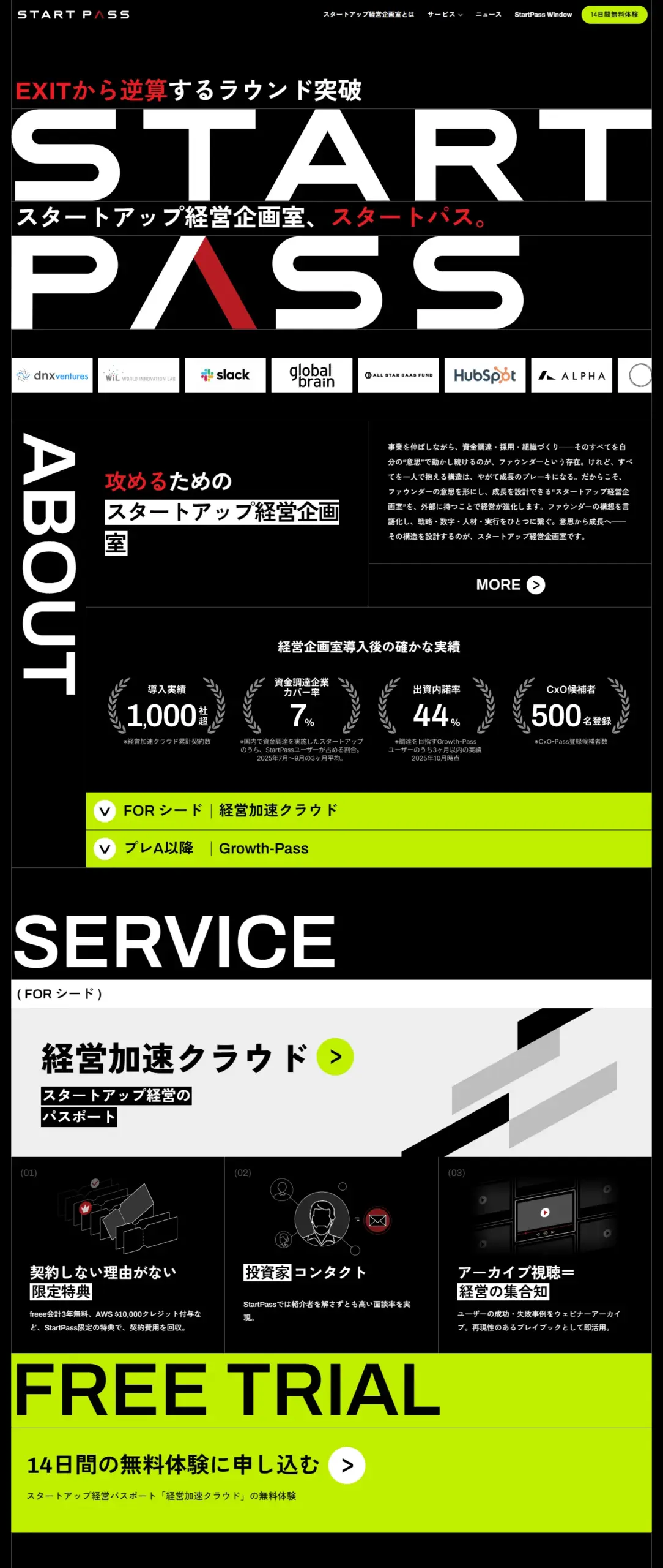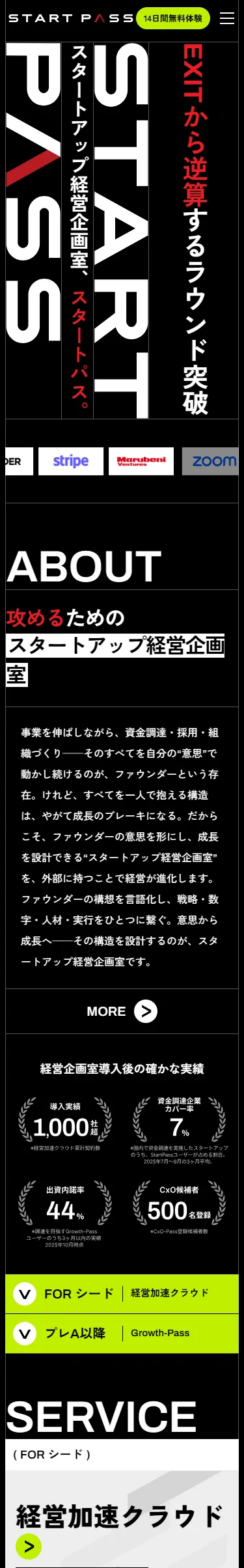 攻めるためのスタートアップ経営企画室「StartPass」。ファウンダーの構想を言語化し、戦略・資金調達・採用・組織づくりまでを一貫してサポートします。「経営加速クラウド」と「Growth-Pass」で経営を進化させます。