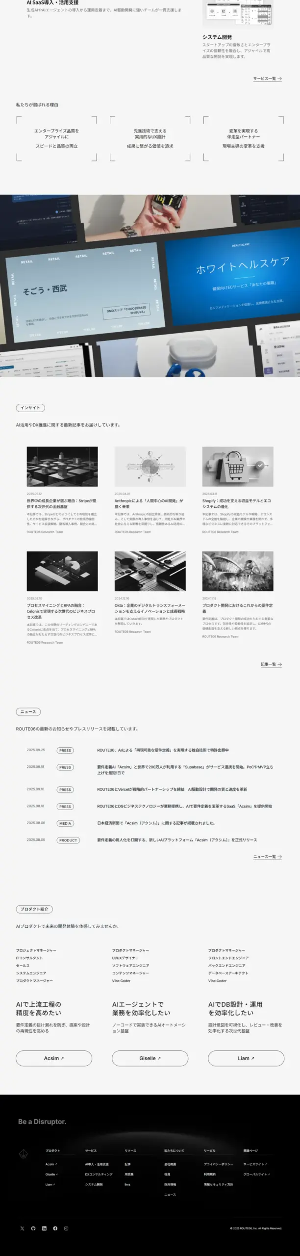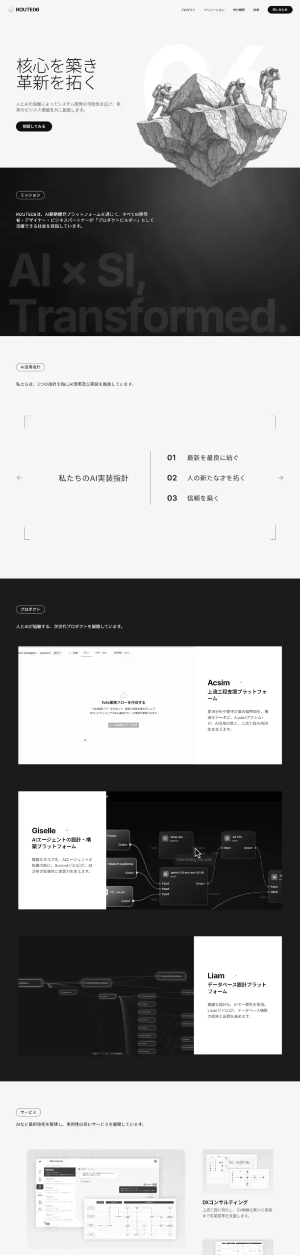 ROUTE06(ルートシックス)は、AI駆動開発プラットフォームとプロフェッショナルサービスでエンタープライズDXを革新。要件設計「Acsim」、AIエージェント構築「Giselle」、DB設計「Liam」。
