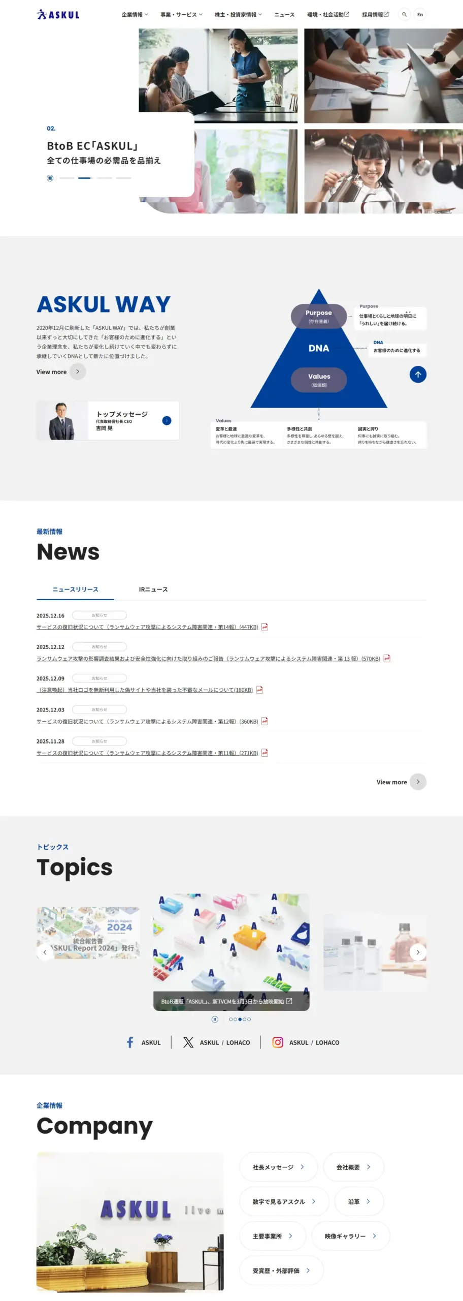 https://www.askul.co.jp/corp/- コーポレートサイト