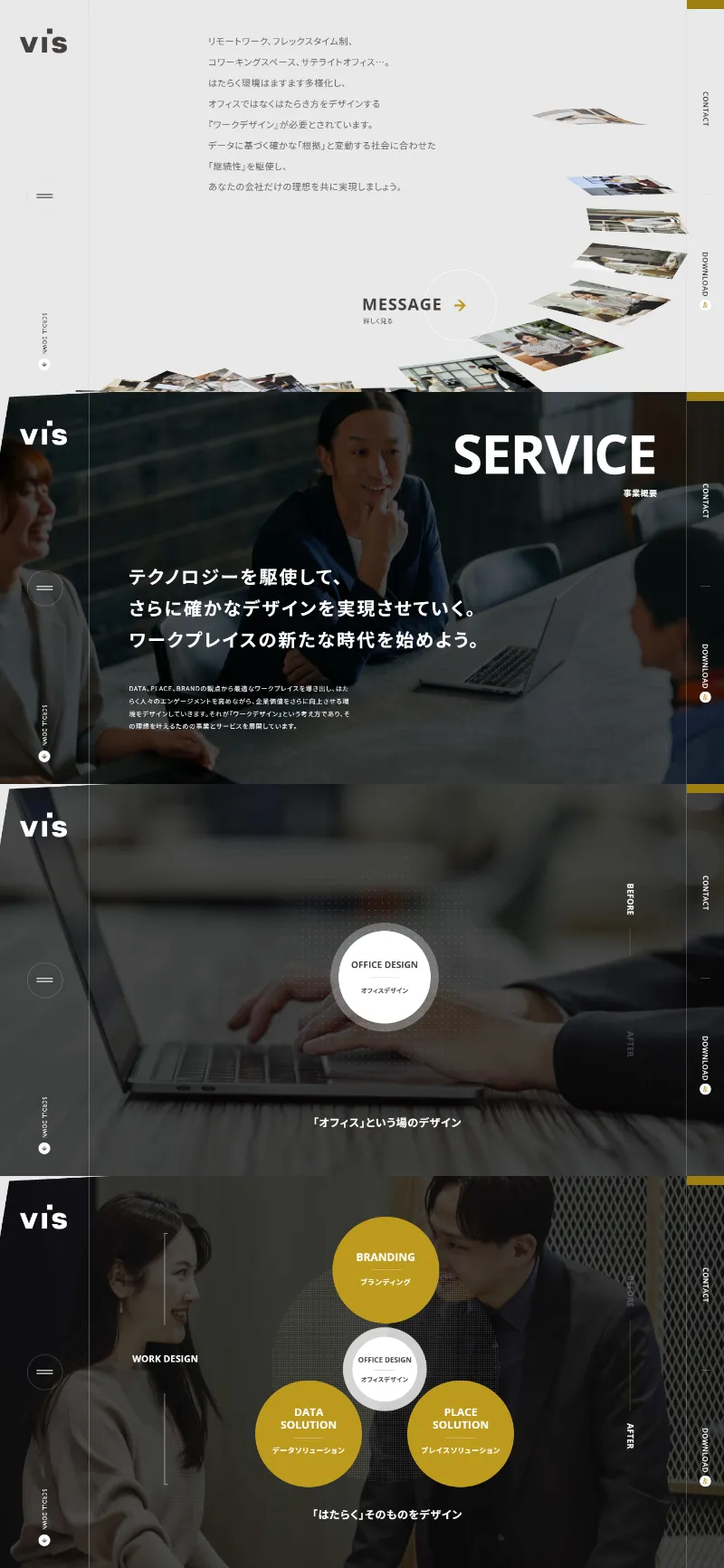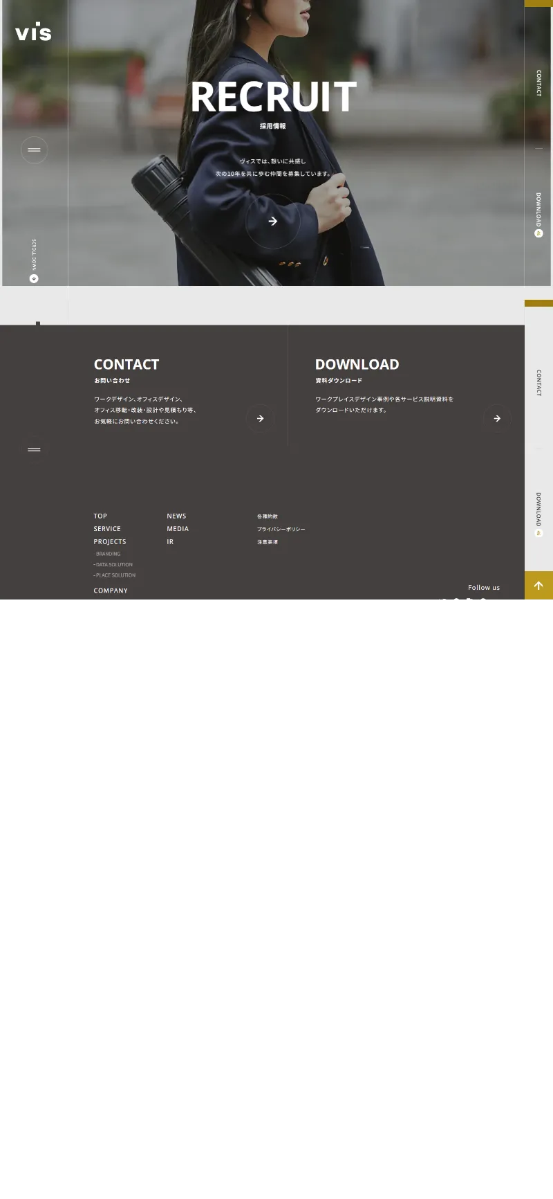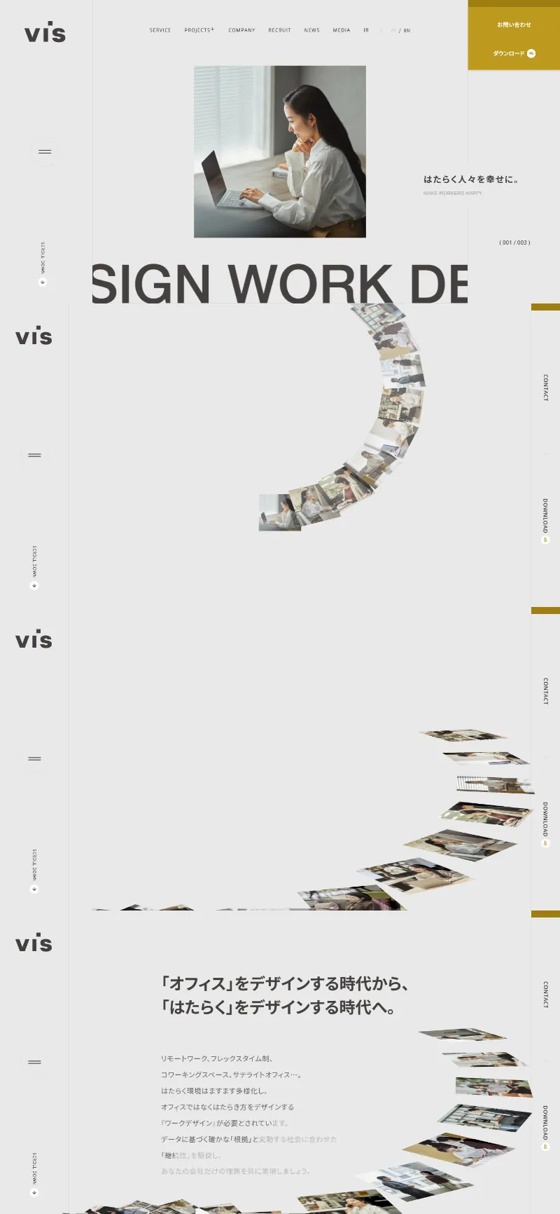 オフィスのデザイン、移転、レイアウトをはじめ、空間・インテリア・ファニチャー・グラフィック・ロゴ・WEB・DTPを通して新しいはたらき方を実現させるソリューションを提供し、お客様の企業価値を高める「ワークデザイン」の株式会社ヴィスのコーポレートサイトです。