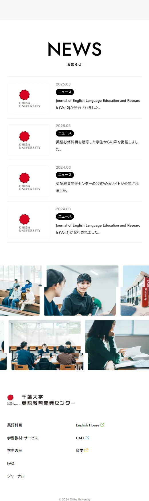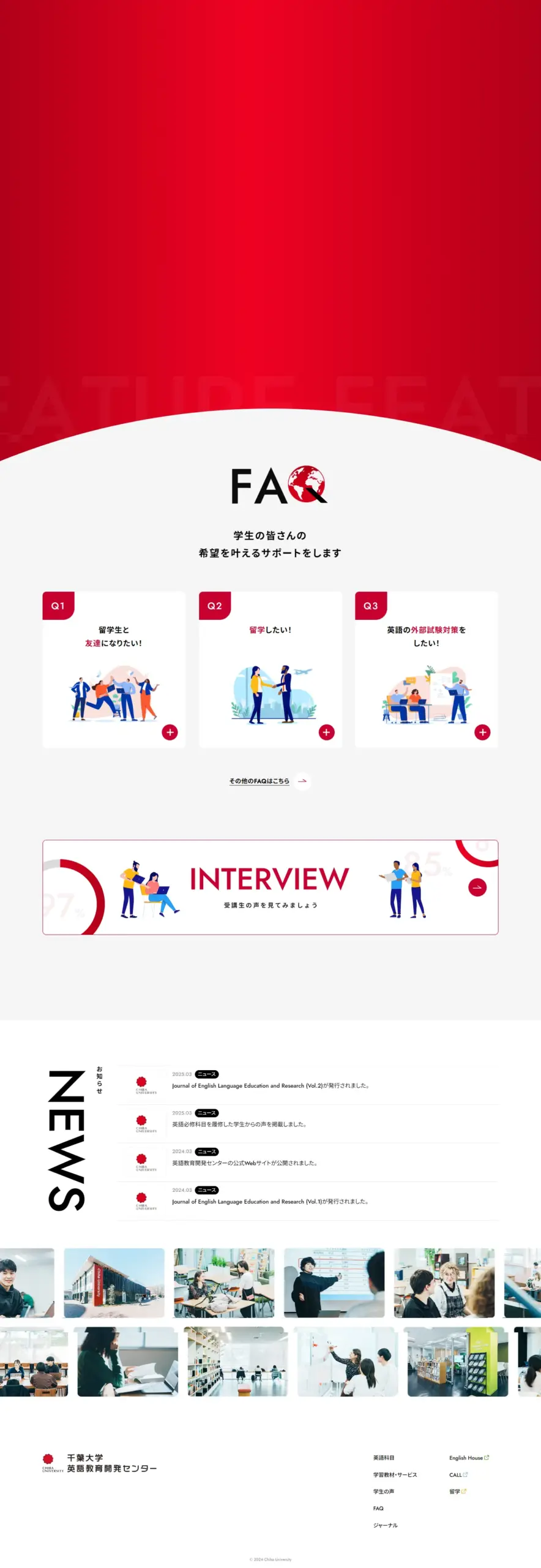千葉大学英語教育開発センター https://cele.chiba-u.jp/ サービス紹介・ブランドサイト 教育・学校 誠実・信頼感 レッド・赤色 使用フォント: サイト説明 ※掲載内容の削除や修正をご希望の場合は、迅速に対応いたしますので、恐れ入りますがお問い合わせフォームよりご連絡ください。 TOPに戻る