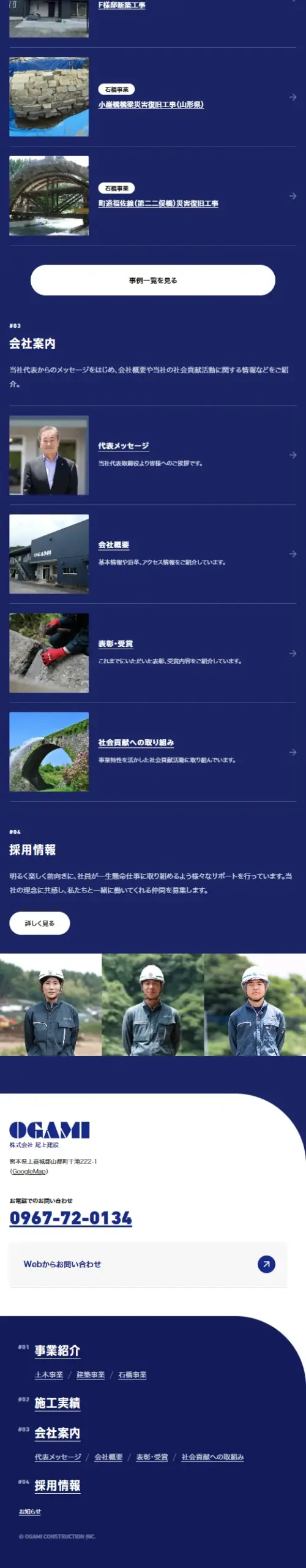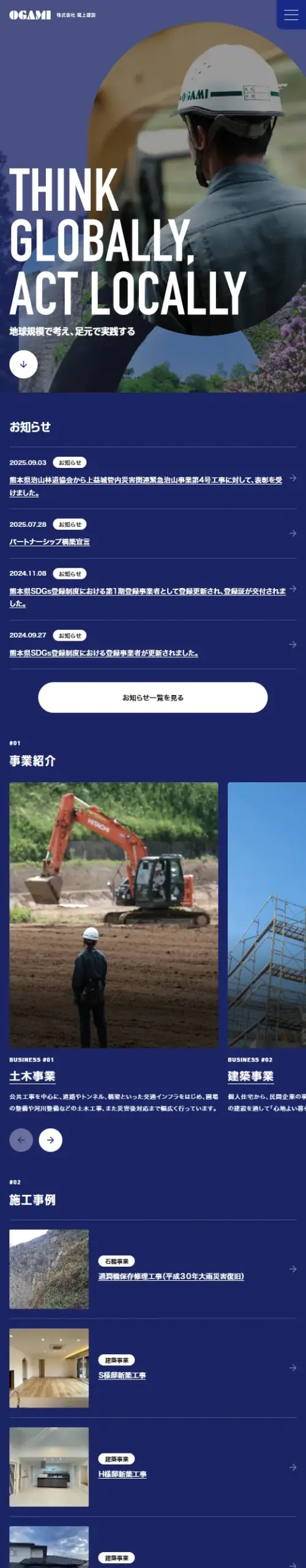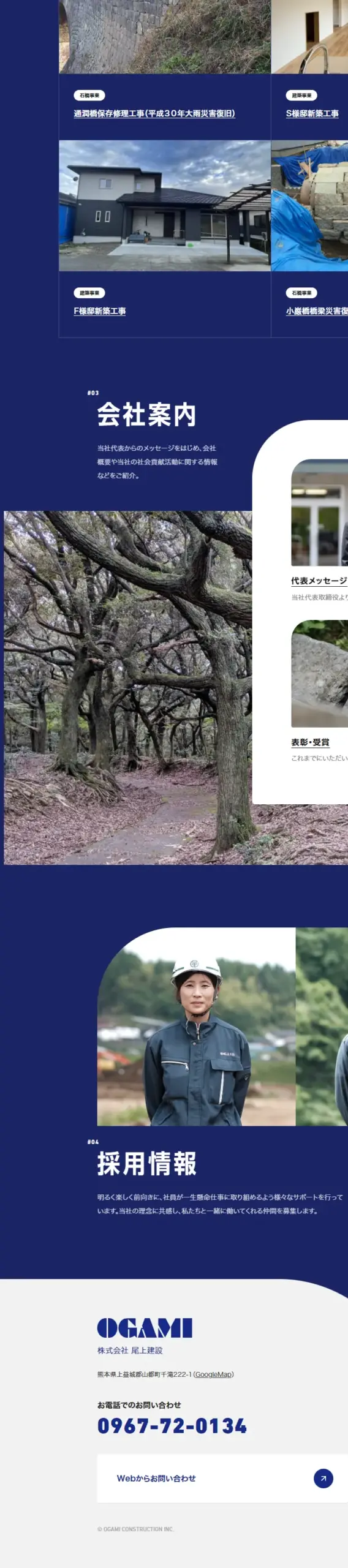 熊本県上益城郡山都町の地域建設業(総合建設業)、株式会社尾上(おがみ)建設。地域の「安全」「安心」「暮らしやすさ」、そして「歴史」を創業60年の確かな技術力で守り続けます。