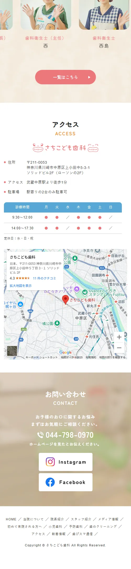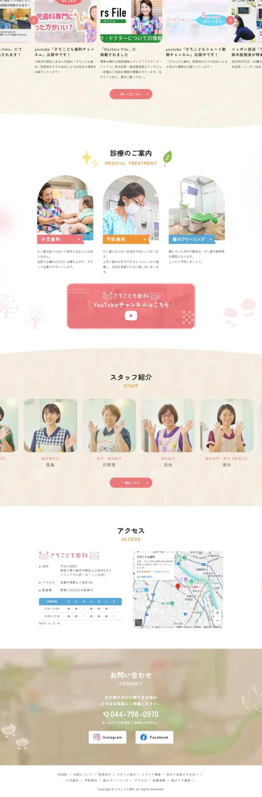 川崎市の歯医者、さちこども歯科(橘こども歯科医院)では小児歯科専門医が多数在籍しています。こどものむし歯や予防についてのお悩みの方はお気軽にご相談ください。土曜日も診療しております。