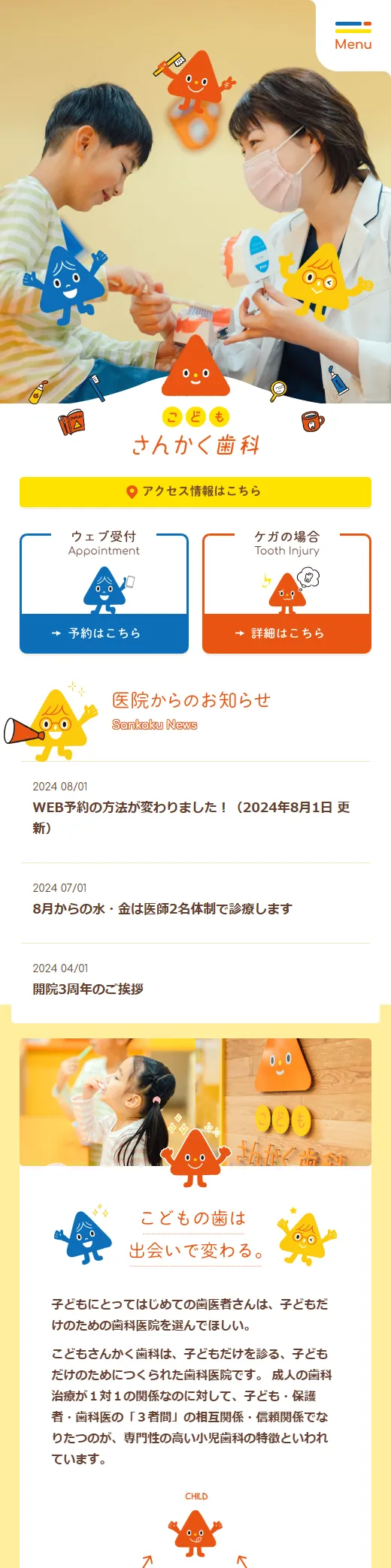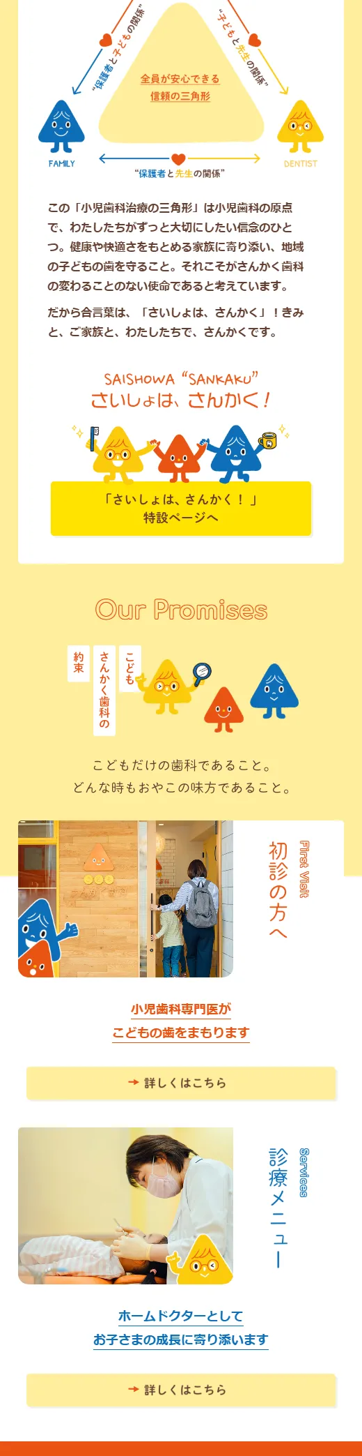 さいしょは、さんかく!こどもさんかく歯科は、こどもだけを診る、こどもだけのためにつくられた歯科医院です。