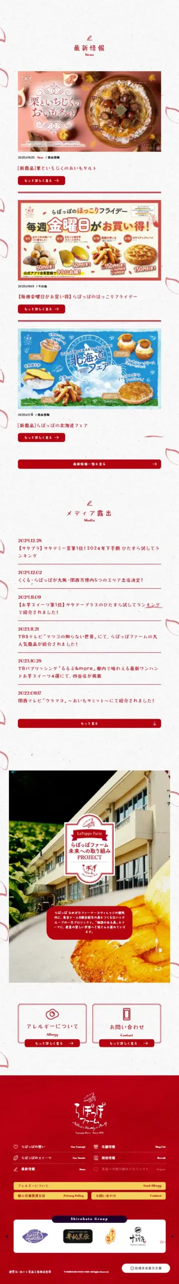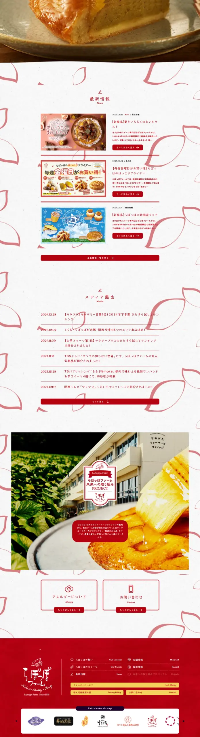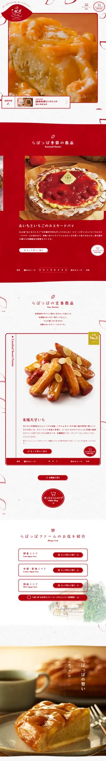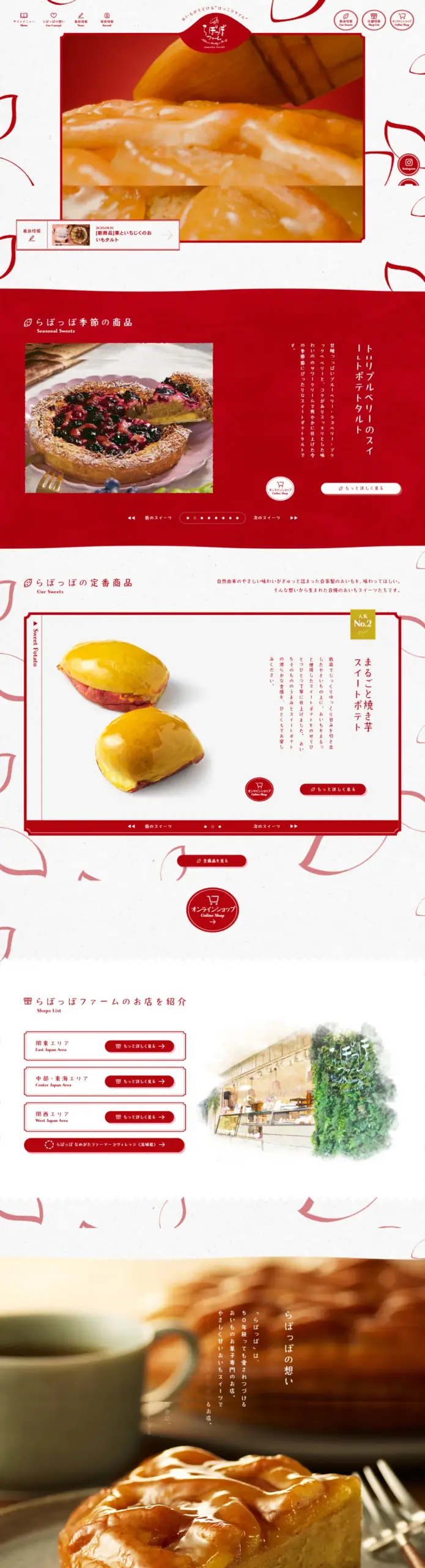 ココロとカラダをほっこり温めるさつまいもスイーツ専門店「らぽっぽファーム」の商品情報、店舗情報、ニュースなどをお届けしてまいります。30年以上愛され続けている人気NO.1商品「ポテトアップルパイ」は、さつまいも本来の甘みを生かし丁寧に焼き上げました。