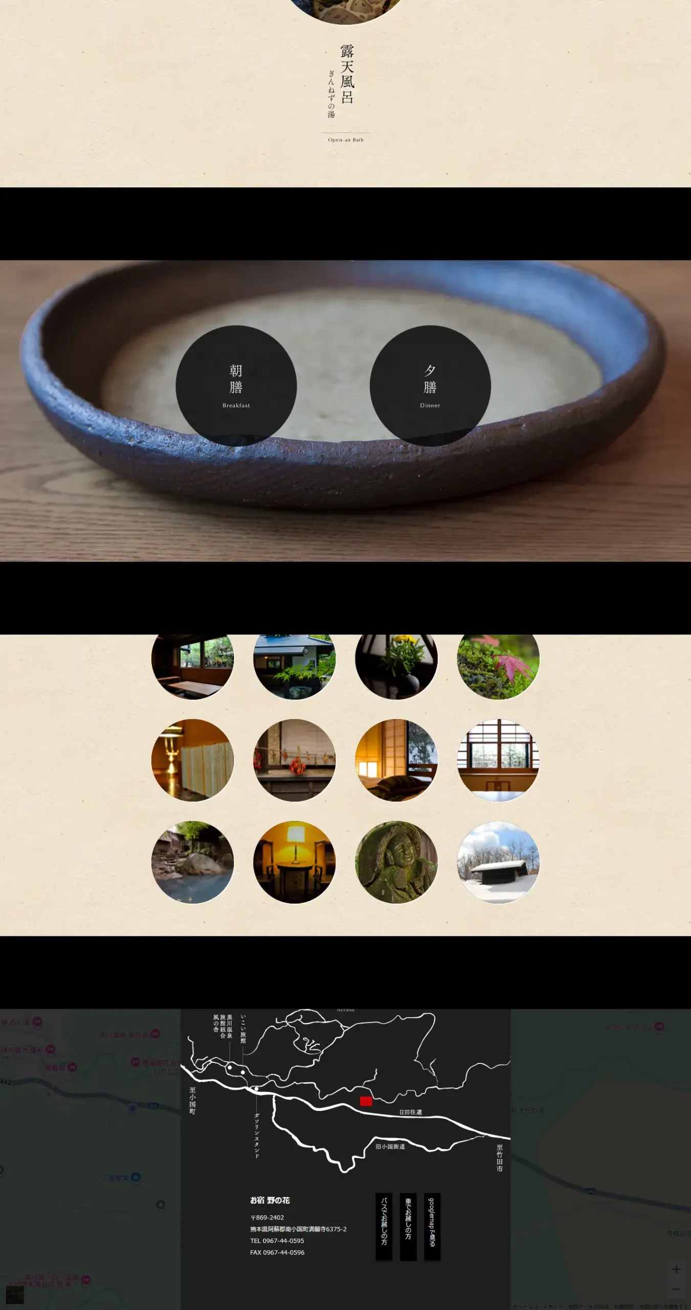 黒川温泉のお宿野の花は熊本県にあり、黒川温泉街から離れた山間にある貸切風呂付き離れ宿の旅館です。